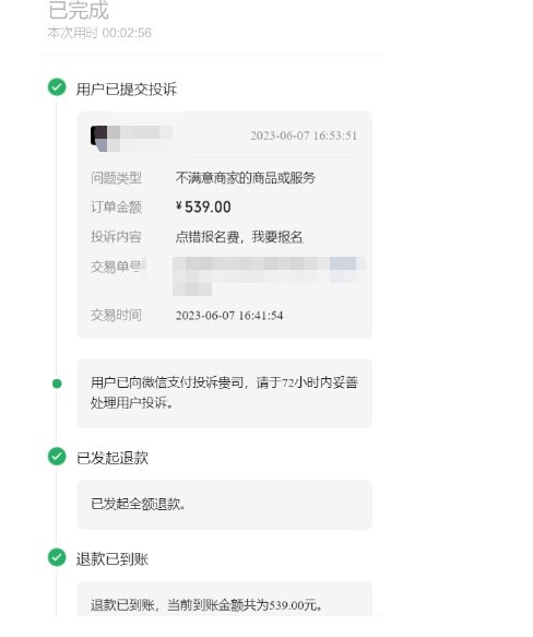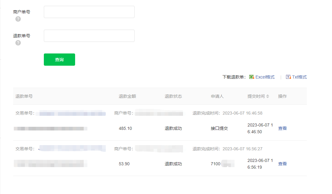 但是因为投诉原因,所以通过投诉流程进行了全额退款,退款详情可以在商户号查询到,但是接口查询不到后续的退款信息