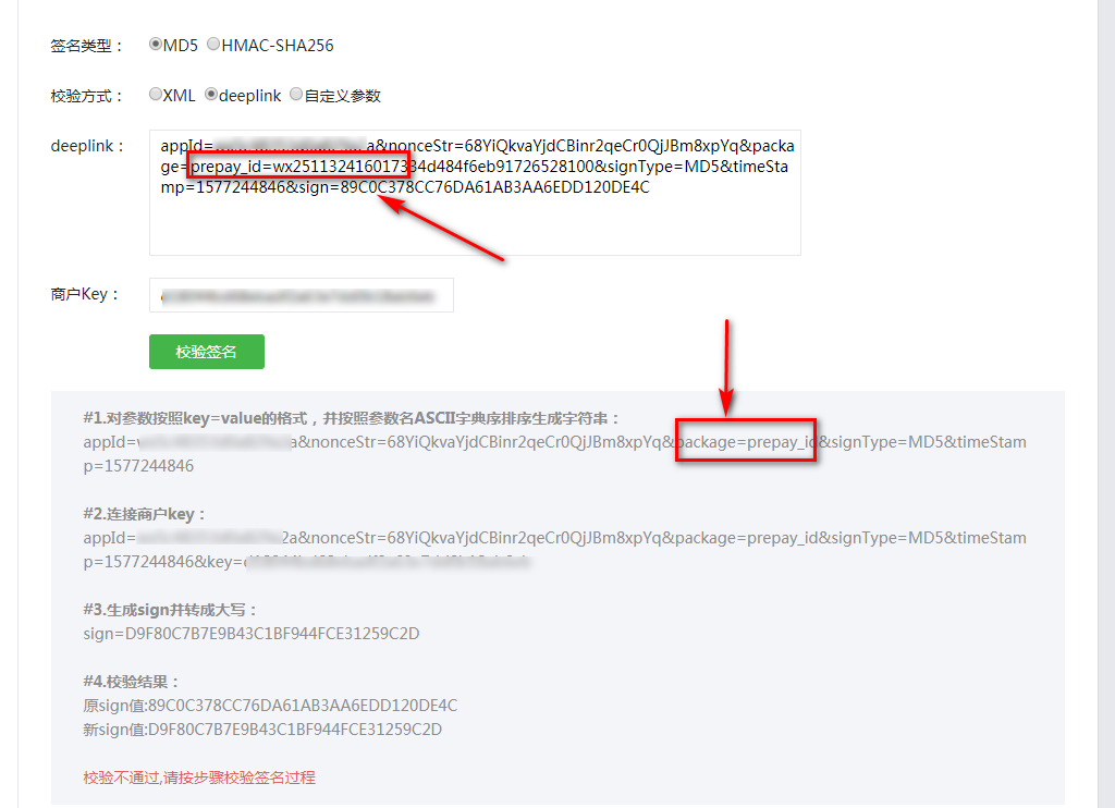 //-> 计算过后得到的值 然后去微信 那边比对 是不一致的 就是微信提供的测试工具