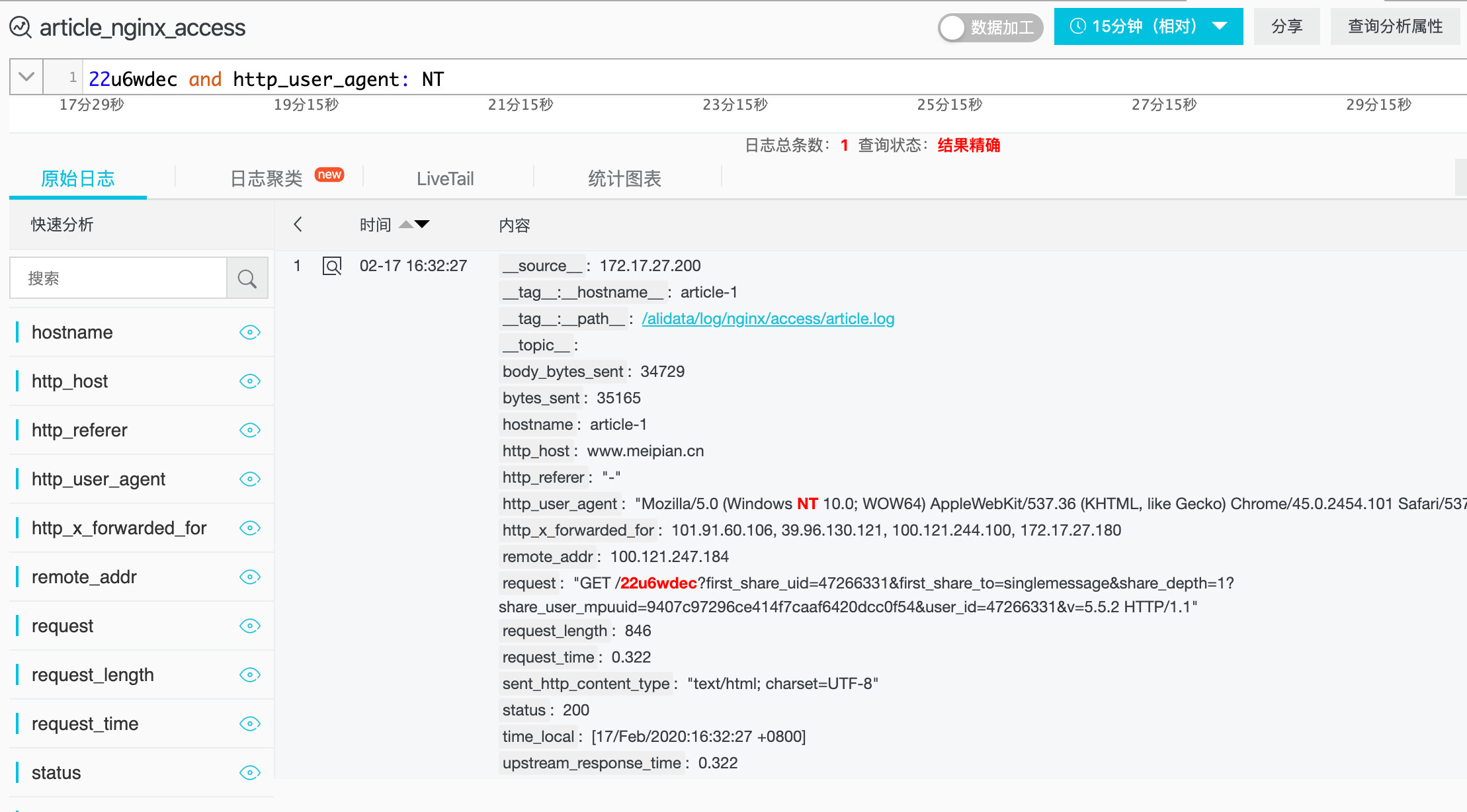 我们的文章分享到微信之后,在后端的 nginx 日志中,自动出现一条访问记录