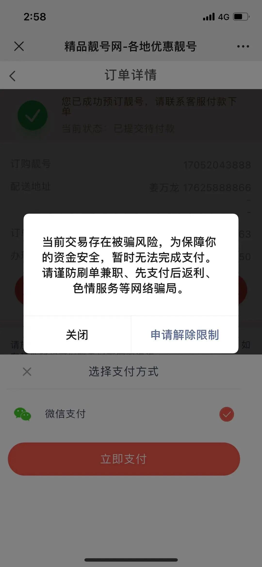 1、请引导用户点击【申请解除限制】,按照流程去操作解除后继续发起支付,谢谢