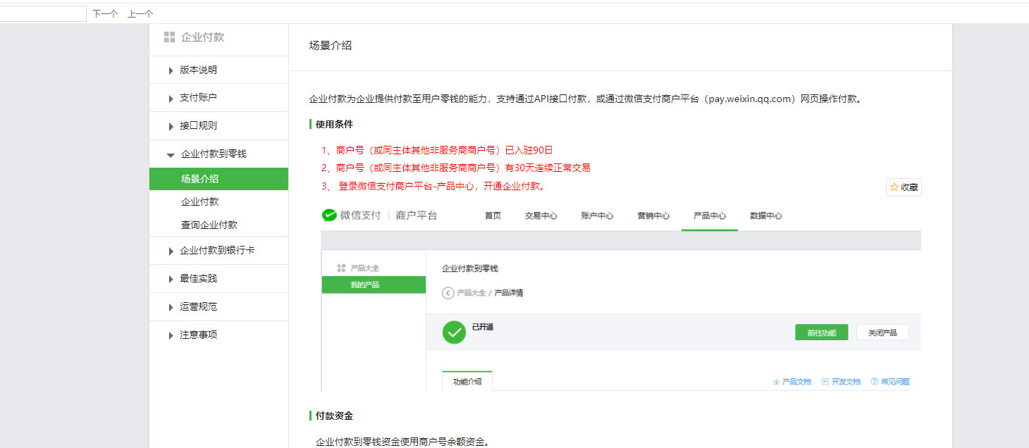 您好,需要开通企业付款功能,https://pay.weixin.qq.com/wiki/doc/api/tools/mch_pay.php?chapter=14_1