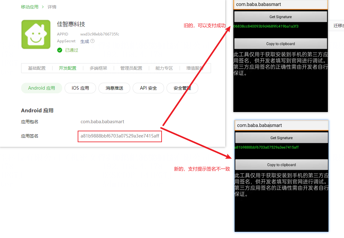 还请确认应用包名(App项目配置文件AndroidManifest.xml中的package值)是否与开放平台【管理中心 / 修改应用 / 修改开发信息】一致。如果不一致,请在开放平台上修改,修改之后,需要有一定的时间才会生效,请半小时后重试。
