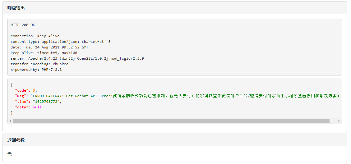 <err_code_des><![CDATA[此商家的收款功能已被限制,暂无法支付。商家可登录微信商户平台/微信支付商家助手小程序/经营账户页面查看原因和解决方案。]]></err_code_des>