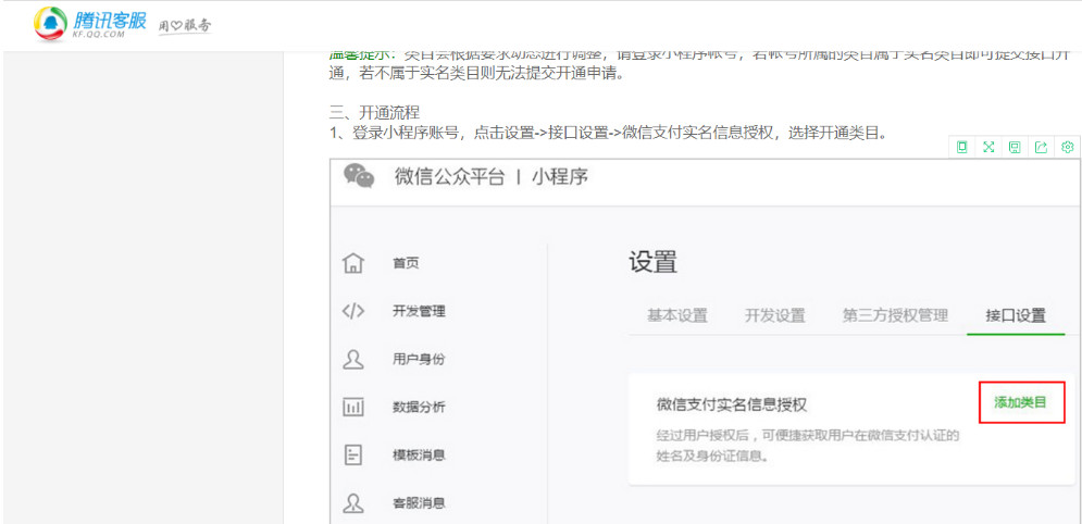 我怎么申请小程序微信支付实名信息授权接口,具体的流程以及接入文档。