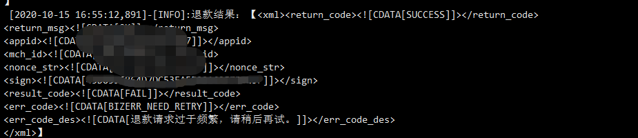 我这边总共才发起五个退款,就出现了这个问题,官方文档上的是、请求频率限制:150qps,即每秒钟正常的申请退款请求次数不超过150次