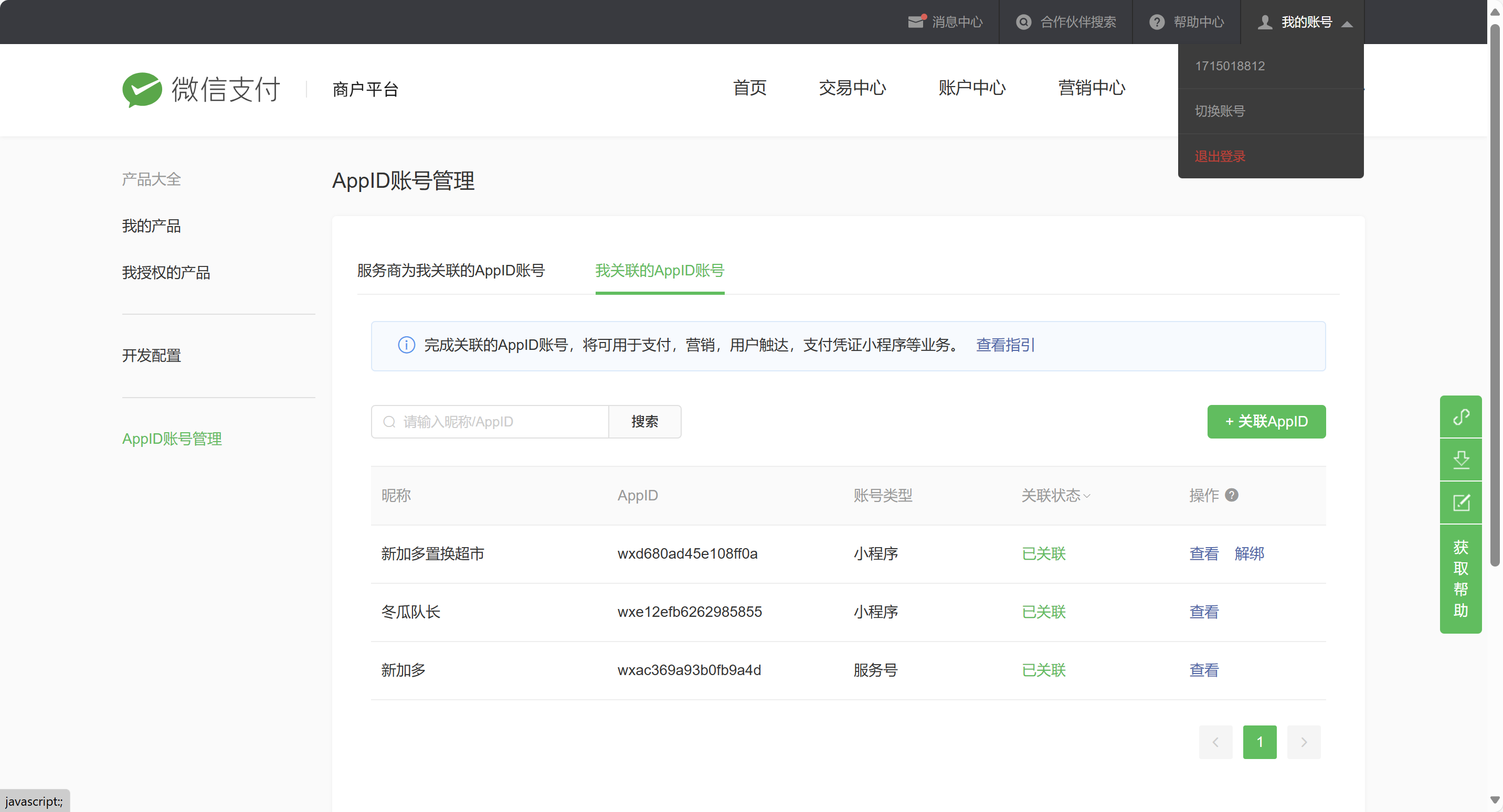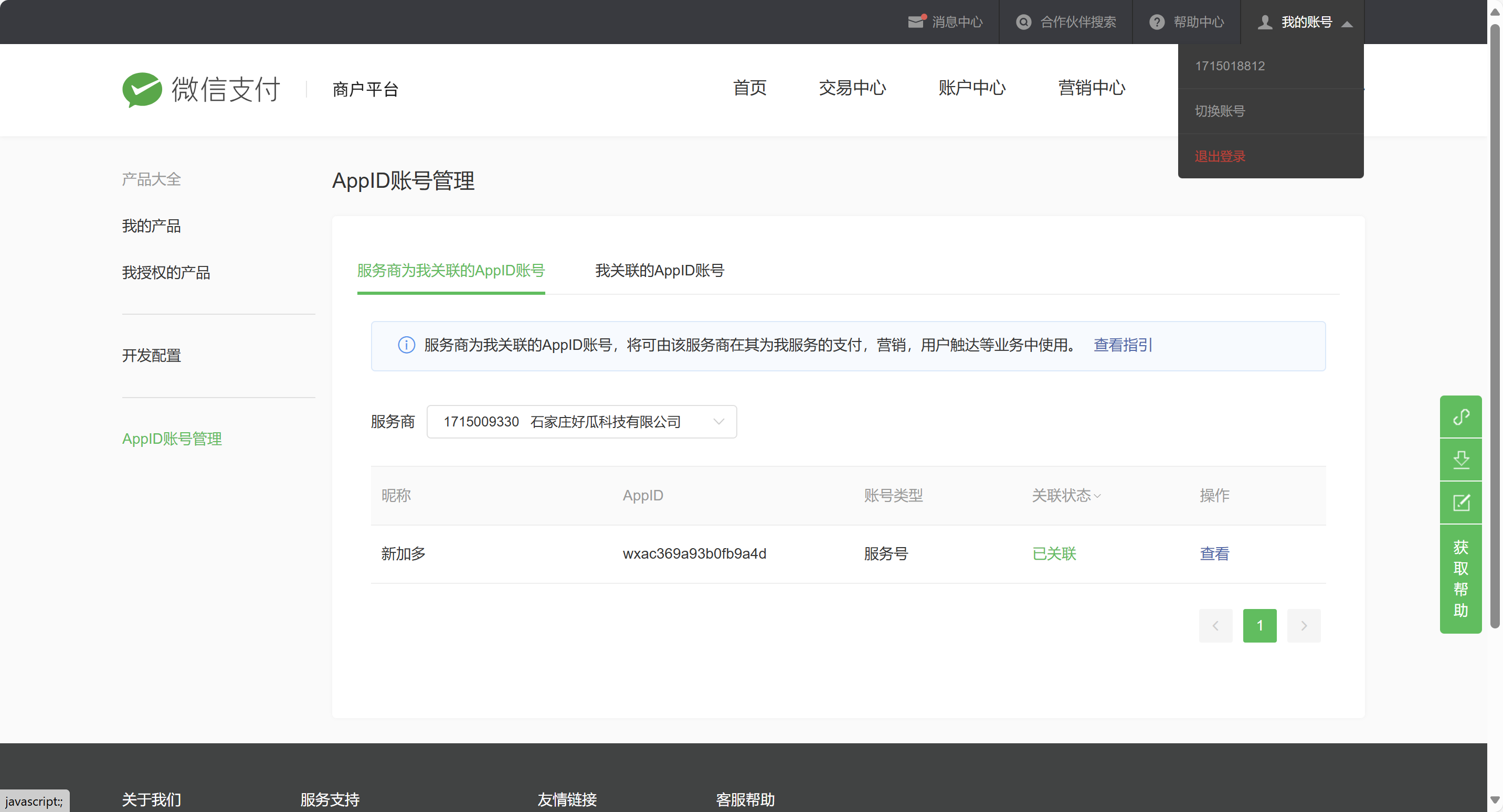 第一张图看着没用;第二张图得看前面「服务商为我关联」里面有没有