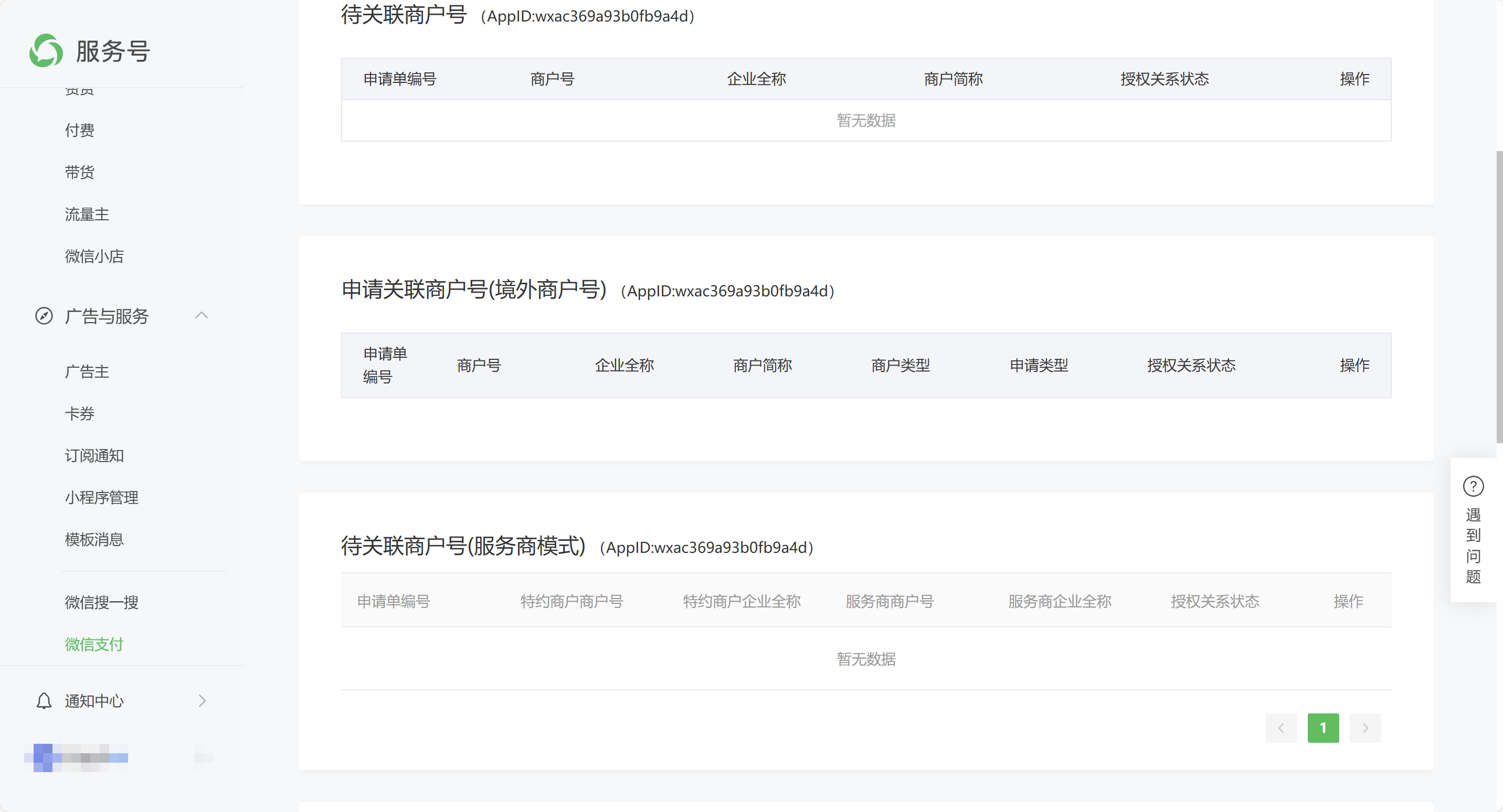 服务商模式下没有绑定关系导致的,你截图俩都没有任何参考价值,要看服务商下的绑定关系