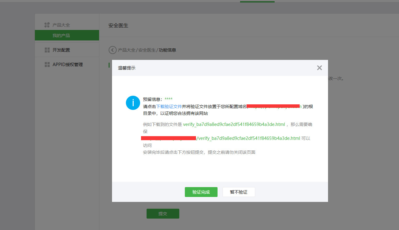 第一步 下载验证文件
