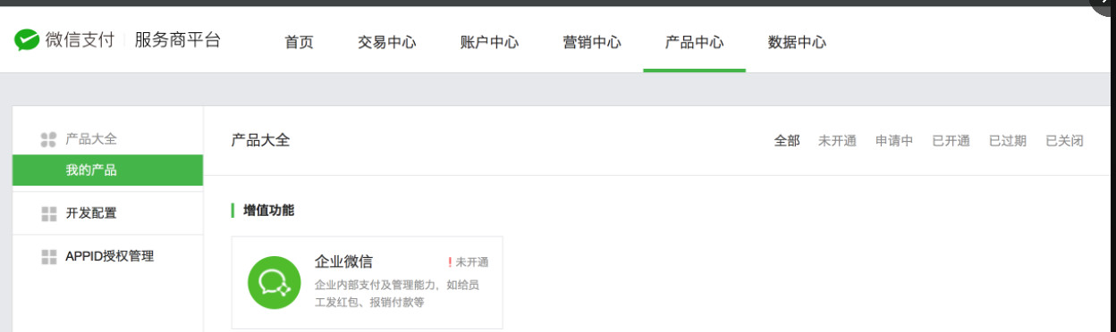 2、在申请成为服务商并通过后,后台顶部菜单没有服务商功能这个选项,也就没法添加特约商户,后面的流程就没法跑,请问可能是什么原因?