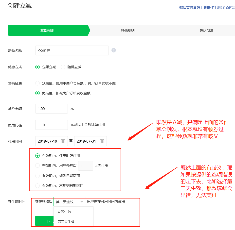 如果按照这个错误逻辑创建的活动,然后再去支付,触发了这个活动,就会显示支付超时,然后失败,这个商户就无法收款,如果把这个活动停止,就恢复正常