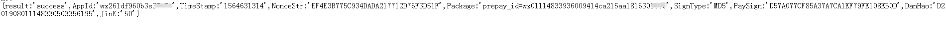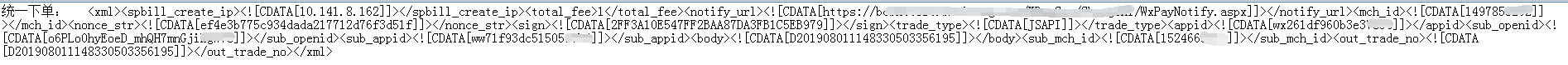 统一下单时的数据: