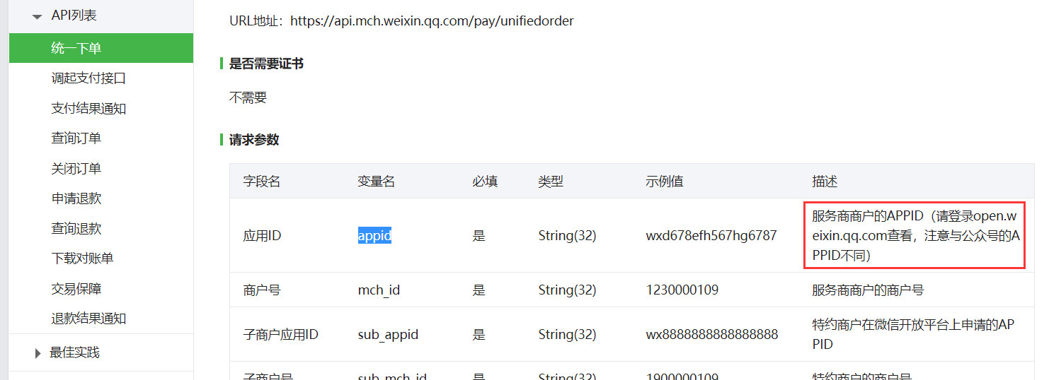 说为“服务商商户的APPID(请登录open.weixin.qq.com查看,注意与公众号的APPID不同)”