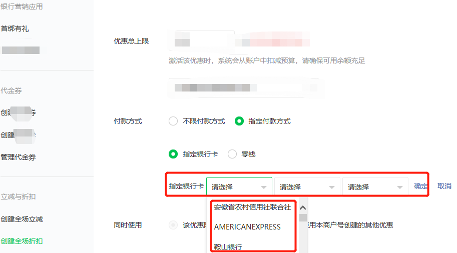微信支付智慧经营活动中银行营销产品支持哪些银行呢?谢谢