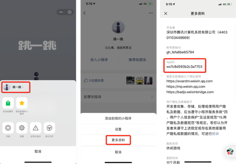 如果你已经发布过自己的小程序,可以直接绑定你的小程序;如果你没有小程序,可以选择绑定其他第三方开发的小程序。按照下图所示的方式获取小程序 appid ,即可绑定现网小程序。