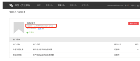 在 WMPF 中,移动应用 ID 被称为 HostAppID。登录「微信开放平台」,点击「管理中心」-「应用详情」查看移动应用 ID (显示为 AppID)。