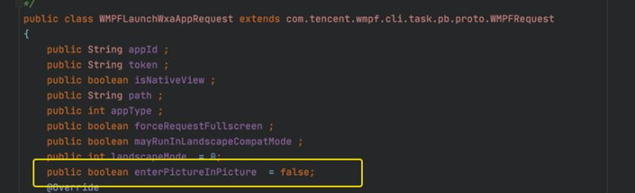 b) 小程序框架在 JS 层没有提供画中画的接口。这里的画中画只是客户端告诉系统进入一个非全屏的窗口,为的是可以让小程序和其他的硬件 App 在屏幕内共存,硬件设备应该定制系统让小程序的窗口不要再次进入全屏模式。