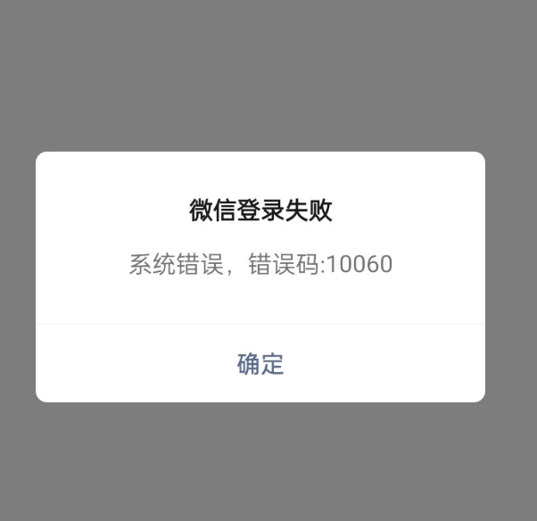 答:已认证主体的未上架应用的微信登录用户次数限制为100次/天。如果超了,则会出现 ”系统错误,错误码:10060“。如下截图: