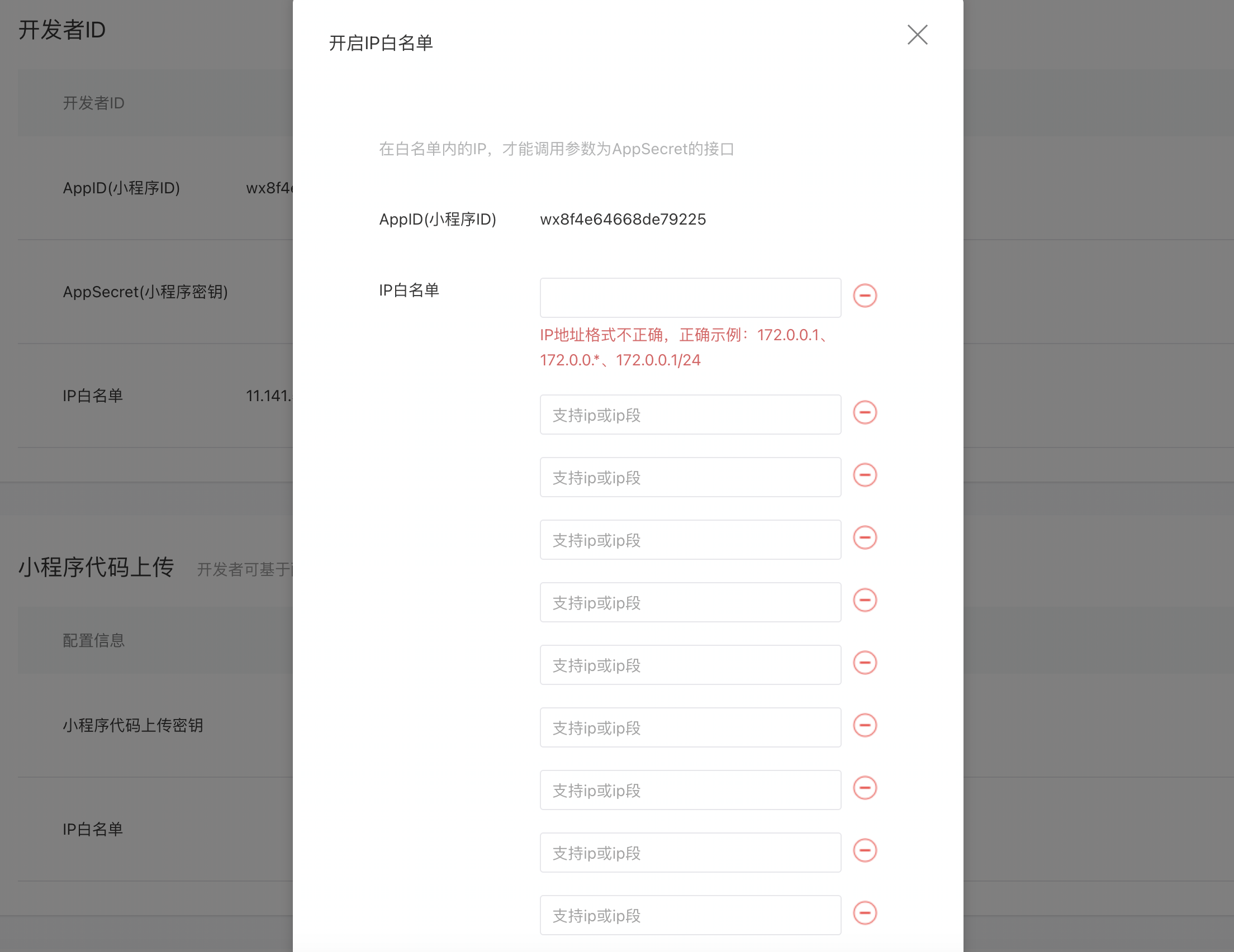 - 一个小程序/小游戏支持配置 10个代码上传 IP 白名单
