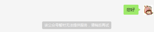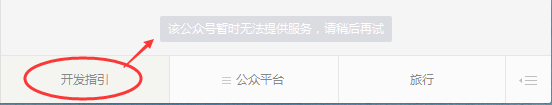 点击开发指引(click类型),发现服务号系统提示:“该服务号暂时无法提供服务“。
