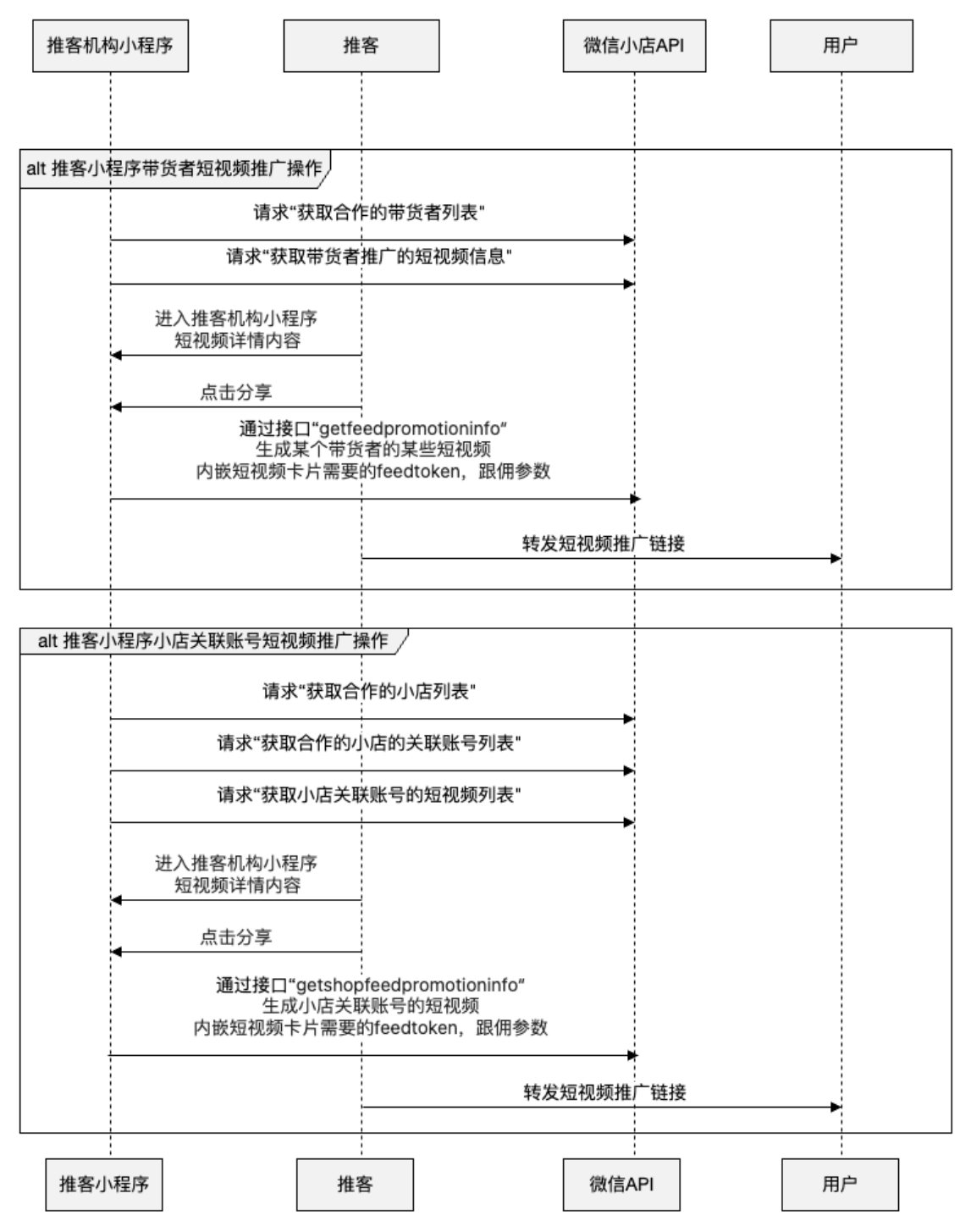 调用生成某个带货者的某些短视频内嵌短视频卡片需要的feedtoken接口传入feed_list、mini_program_appid、talent_appid、sharer_appid,可生成某个带货者的某些短视频内嵌短视频卡片需要的feedtoken