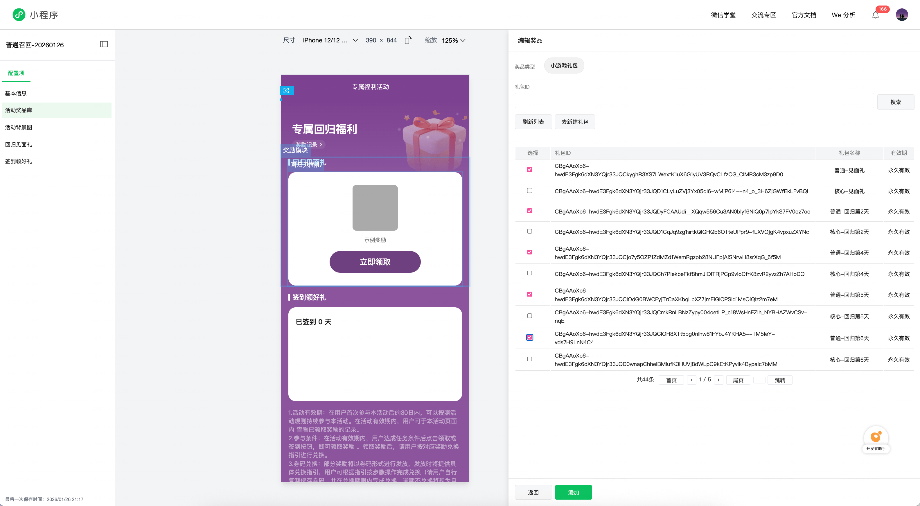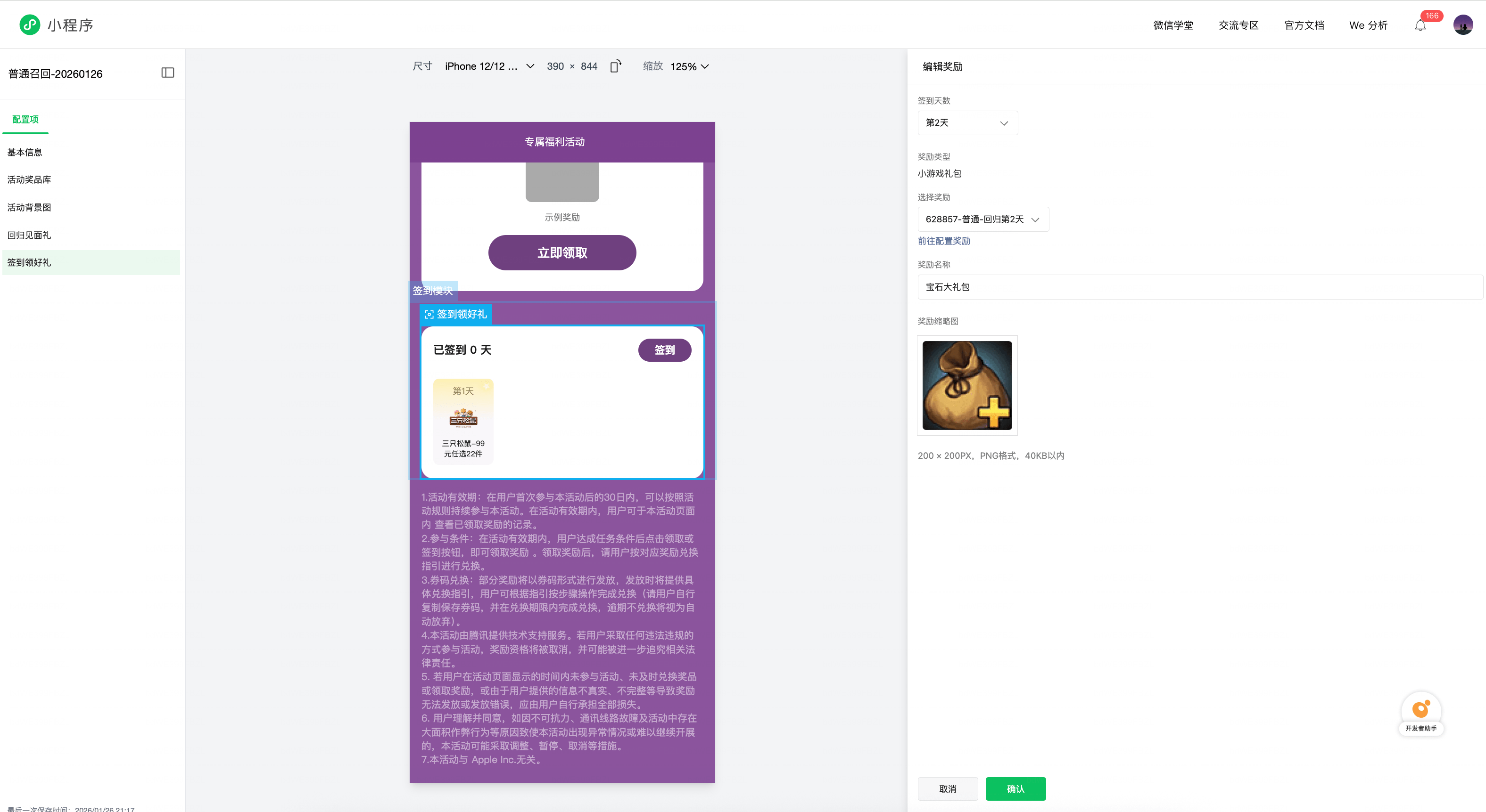 已配置游戏圈的「每日签到礼包」,参考:小游戏文档指引