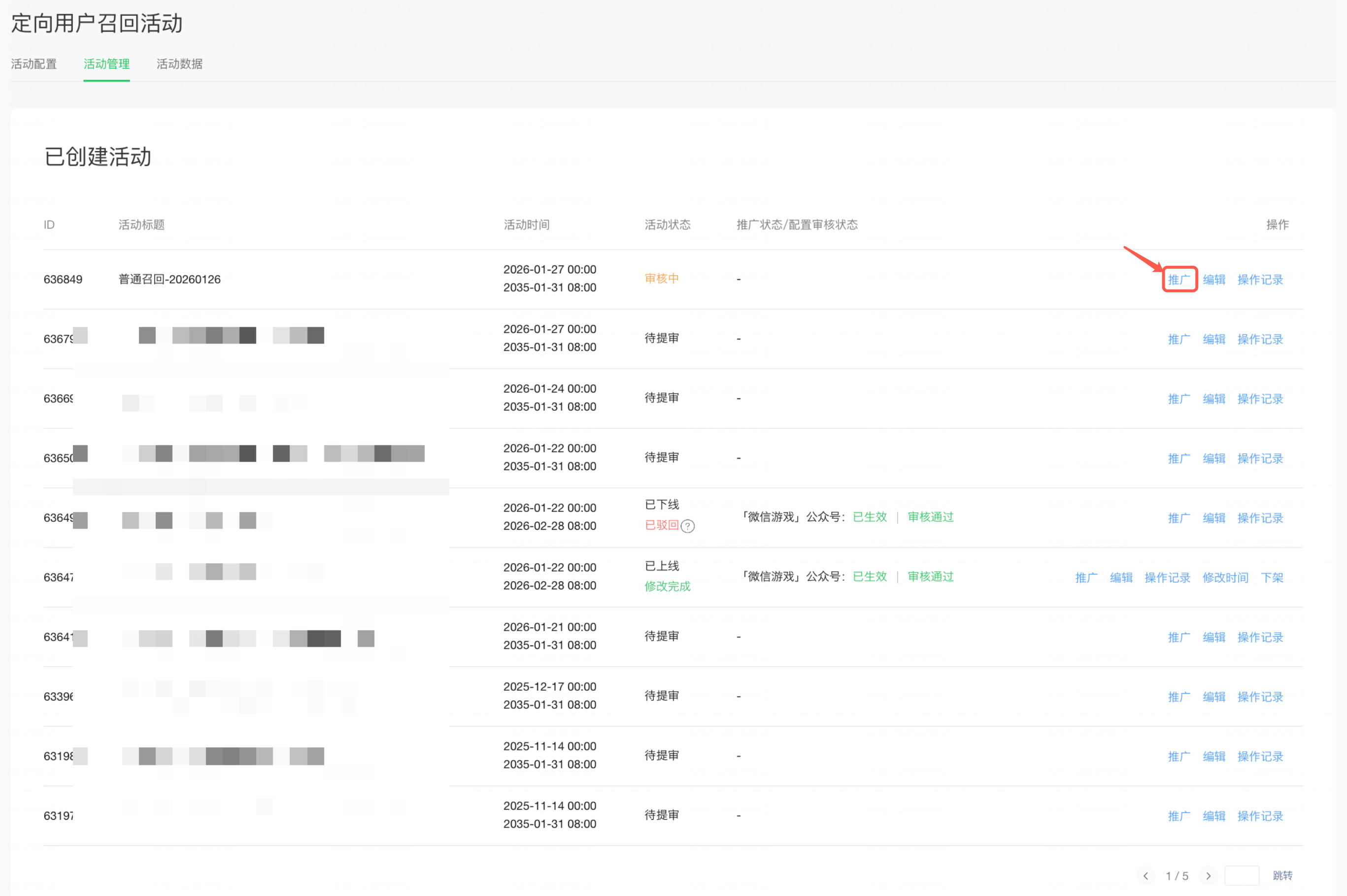活动提审后,得到活动对应的开放接口(OpenLink),用于接入游戏内活动入口,参考说明文档接入:PageManager