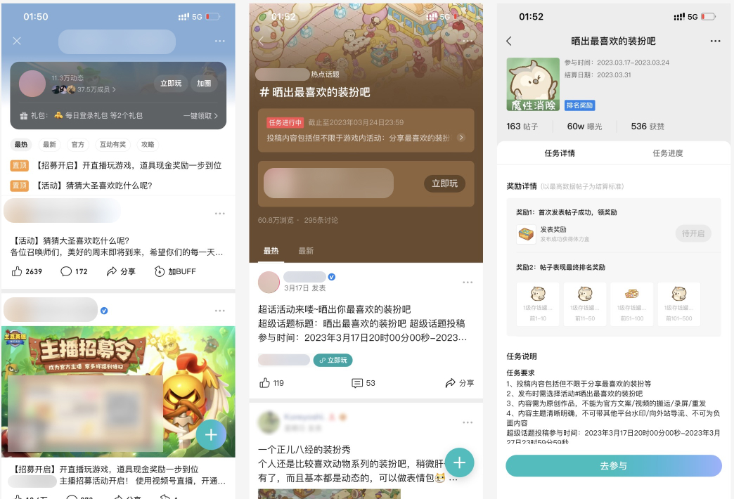 - 开发者可以通过玩法、任务等方式,鼓励用户在社区交流、互动。