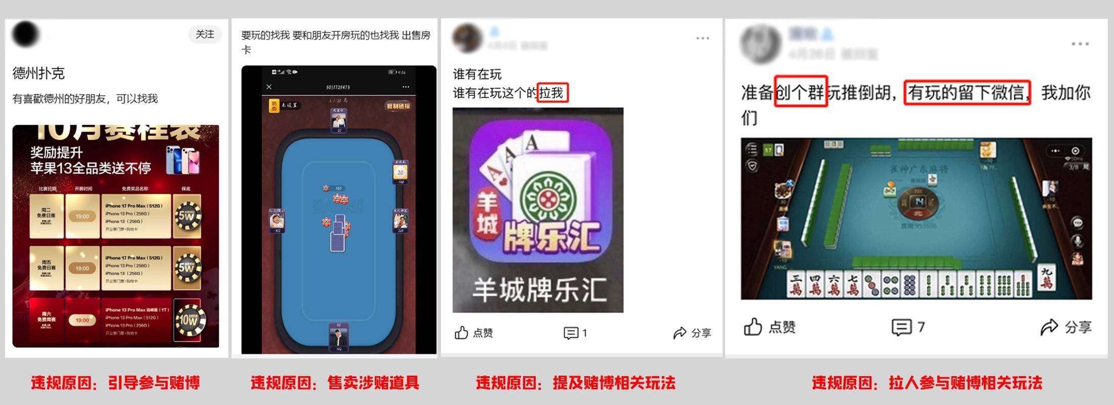 3.1.3 提及赌博相关玩法或宣扬游戏中具备赌博性质的功能,包括但不限于不得出现老虎机、炸金花、梭哈、百家乐、21点、赌马等涉赌玩法或素材。