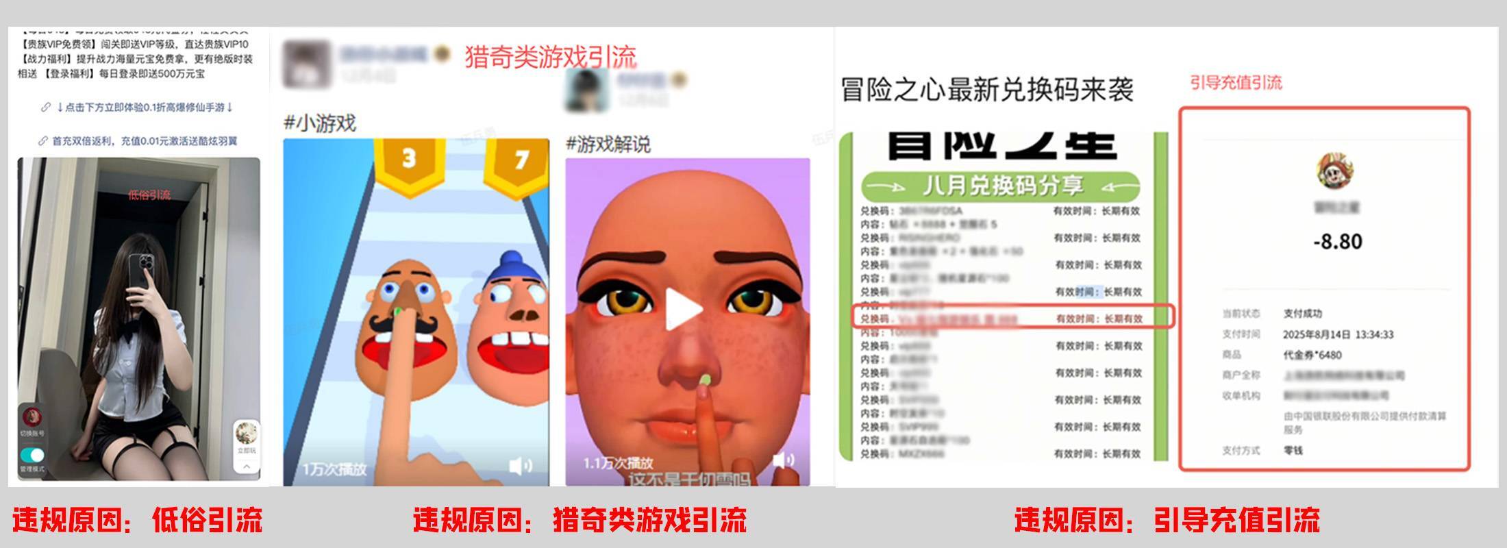 3.2.5 禁止引导用户至外部平台下载、使用小游戏,或将用户引流至外部平台等可能给用户带来风险的行为;