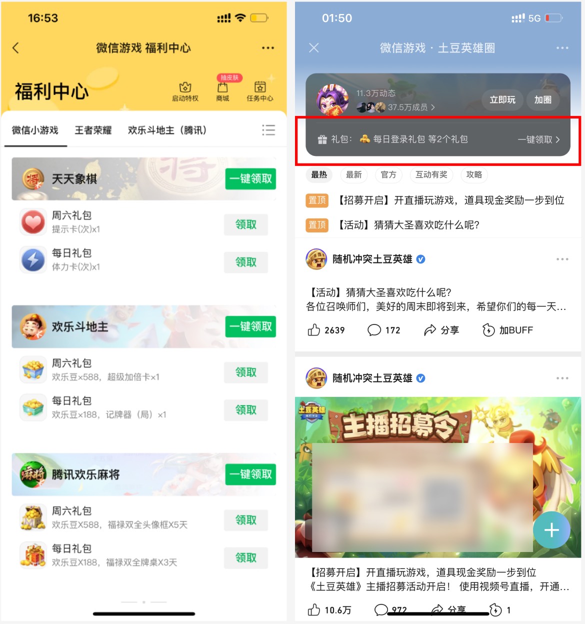 - 周六福利日礼包:每周六打开游戏圈可领取。发布后,C 端立即生效。