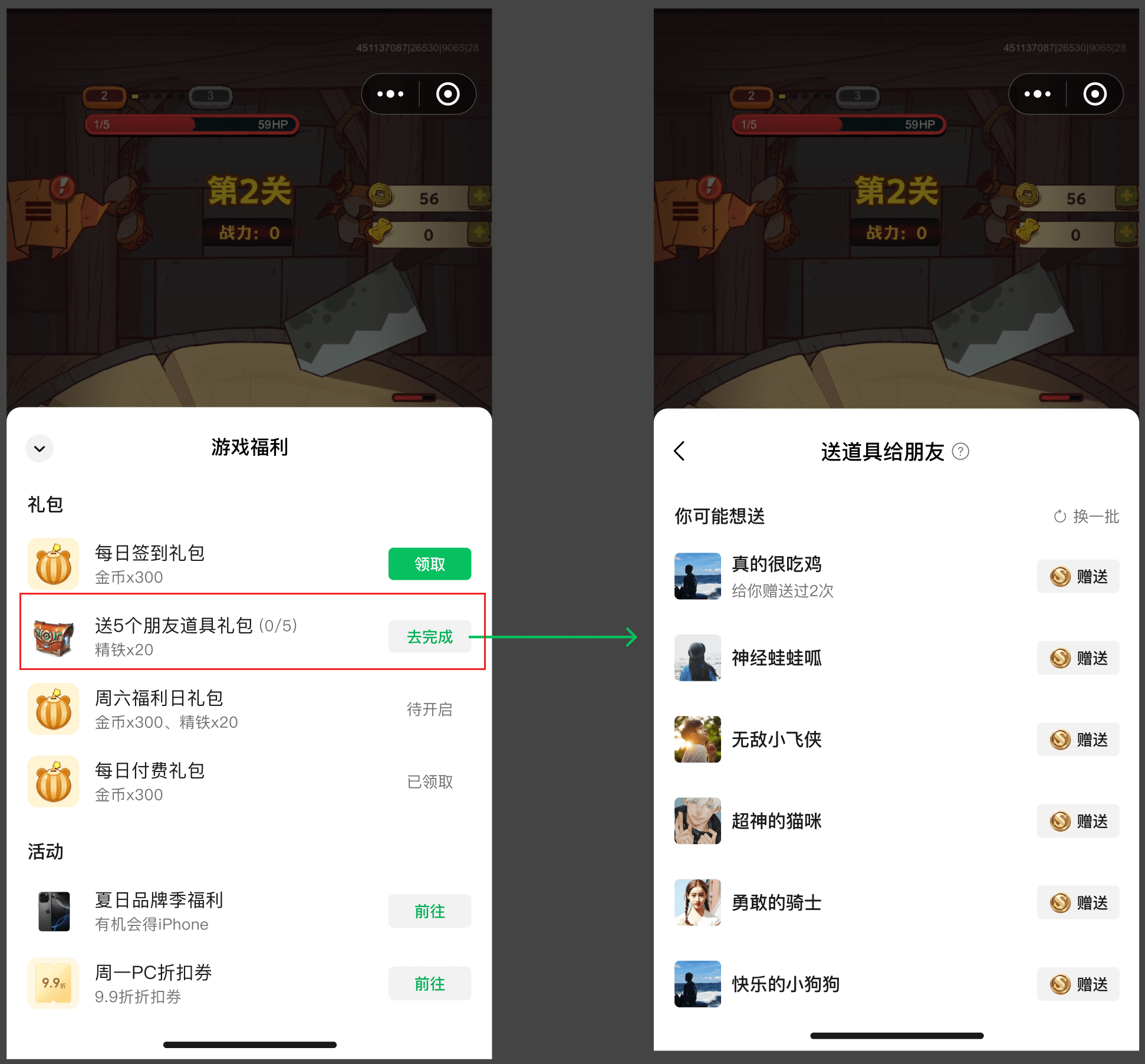 # 给朋友送道具