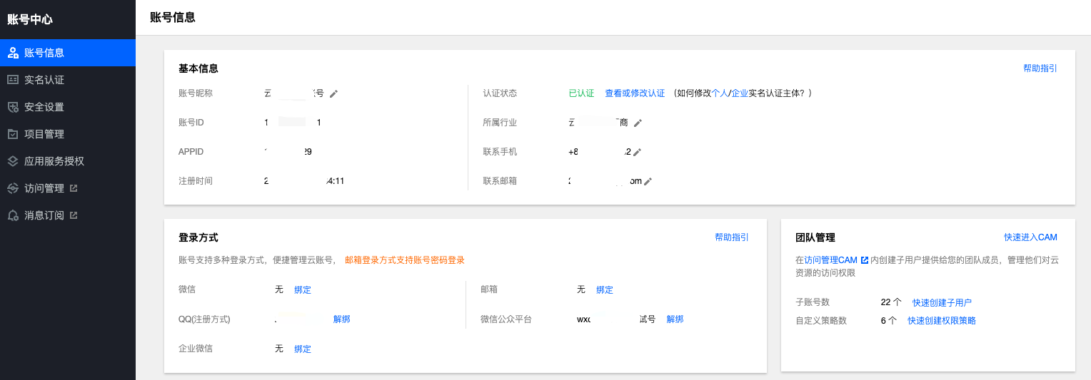 # 腾讯云账号说明