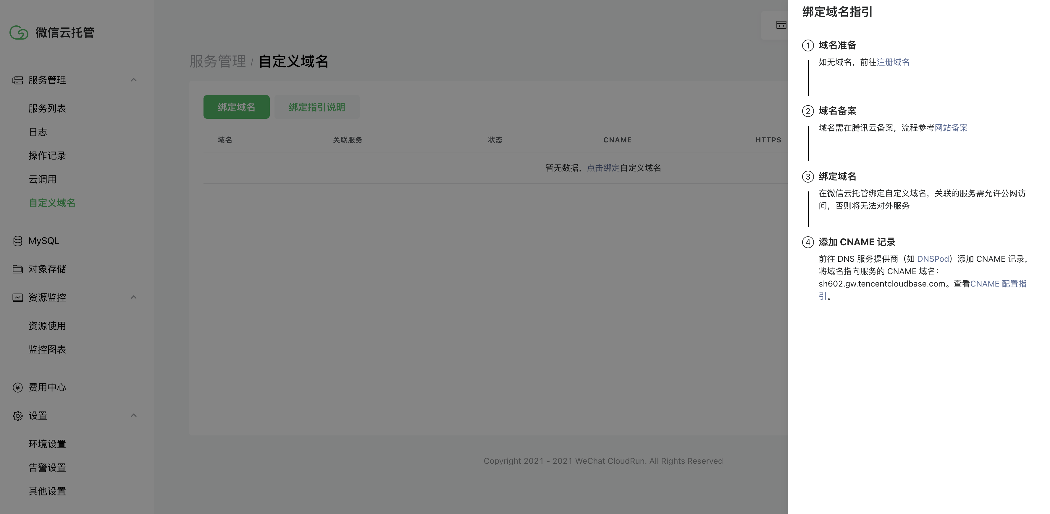 • 微信云托管绑定域名也支持在其他云服务厂商中注册的域名;