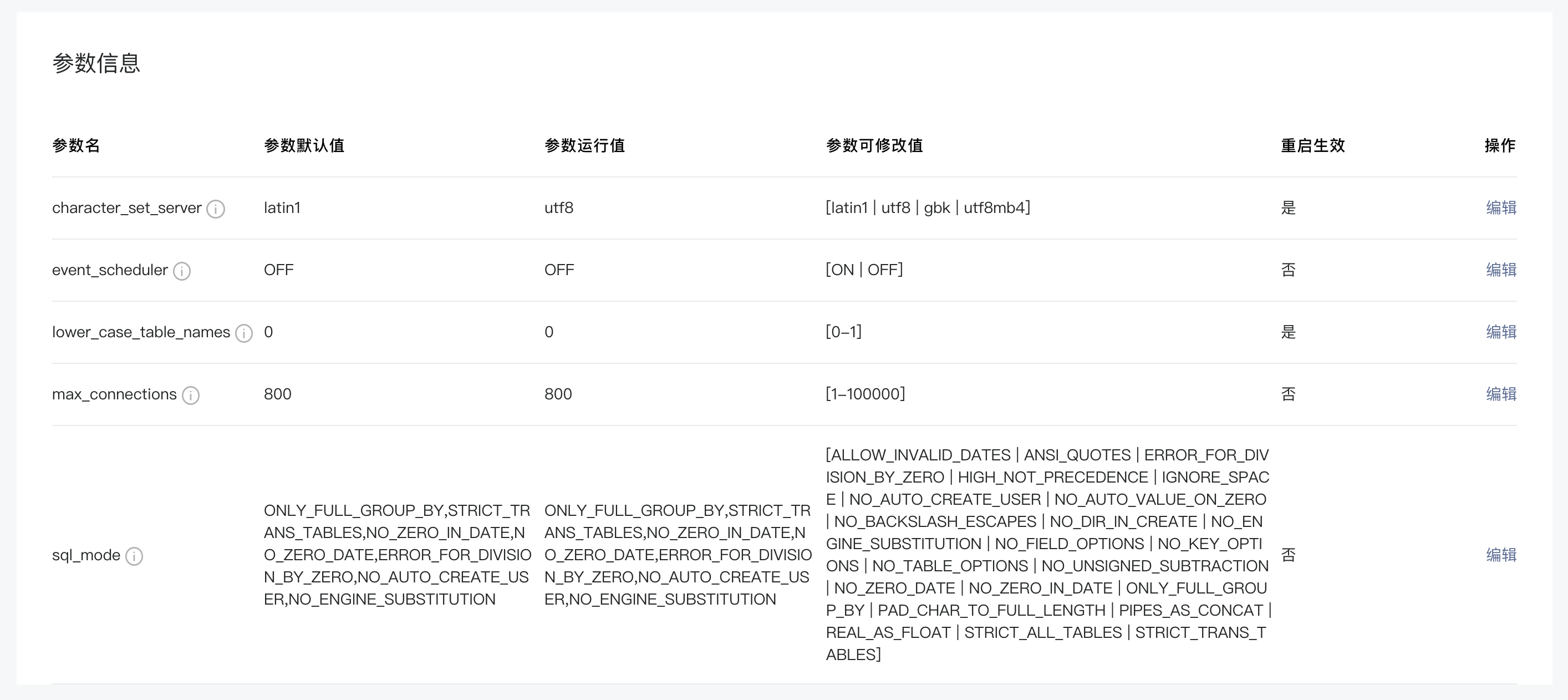 注:以上参数目前只能手动在控制台进行操作,不支持执行SQL语句设置。