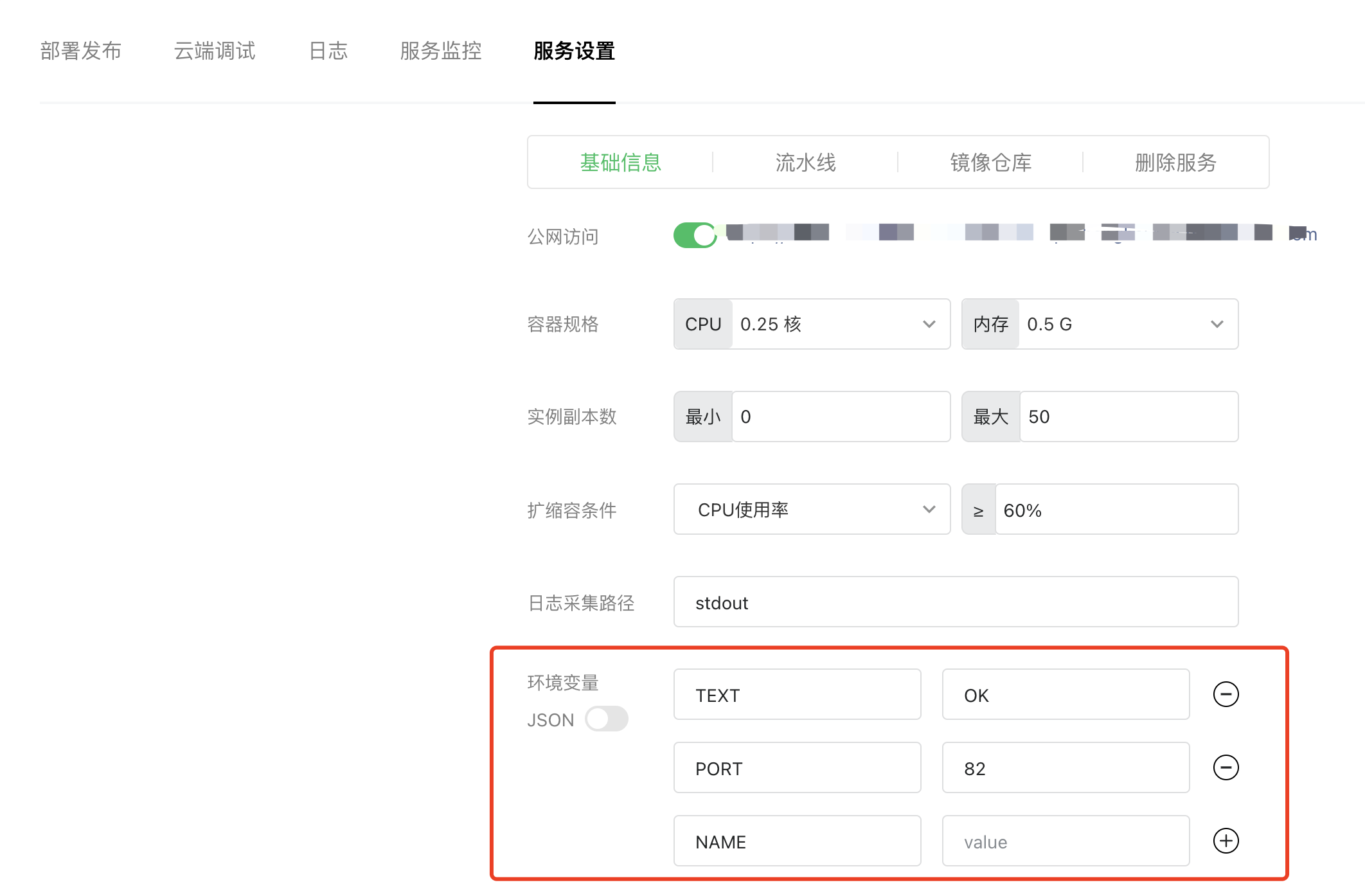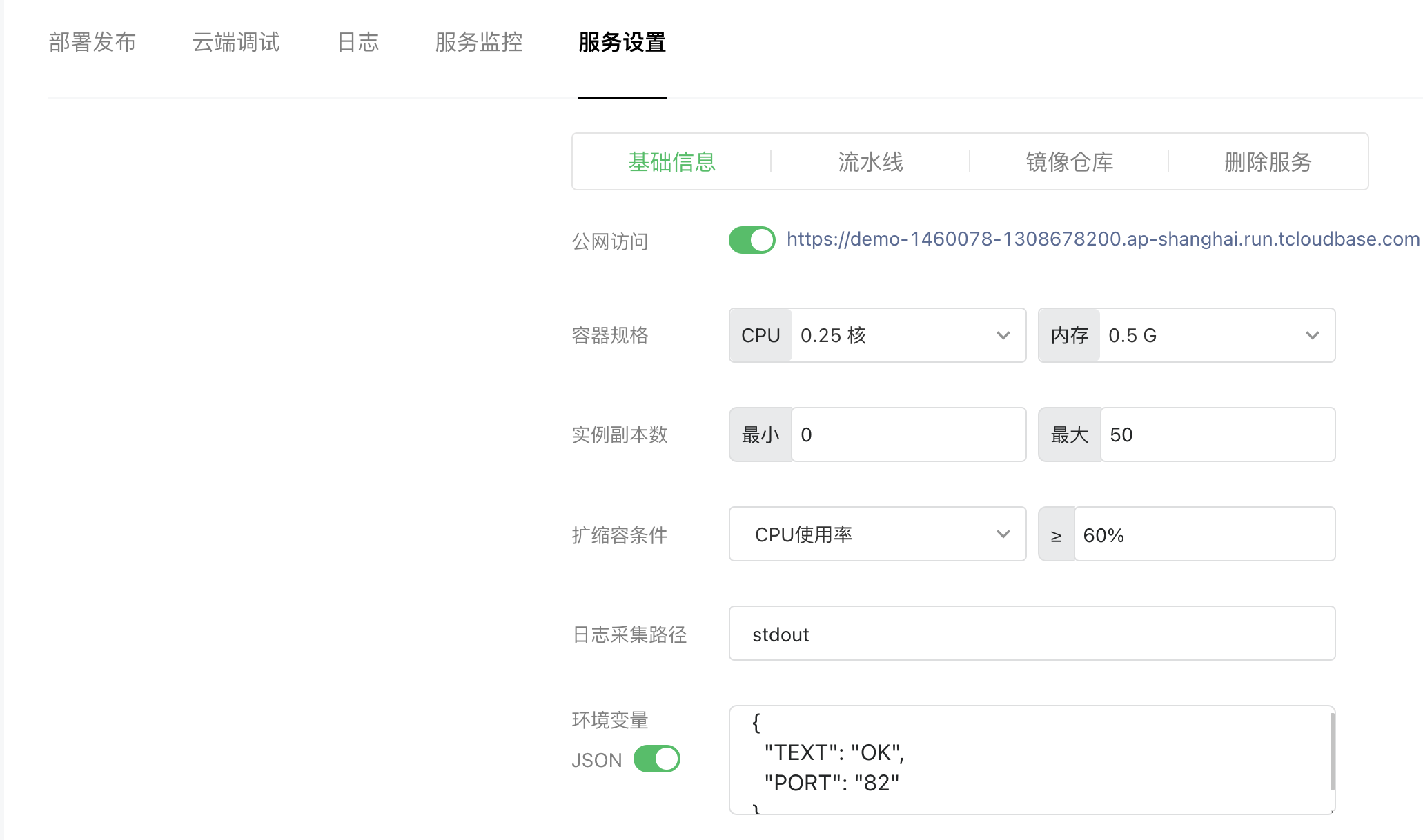 基础信息主要分为「公网访问」和「服务版本配置」两个部分。