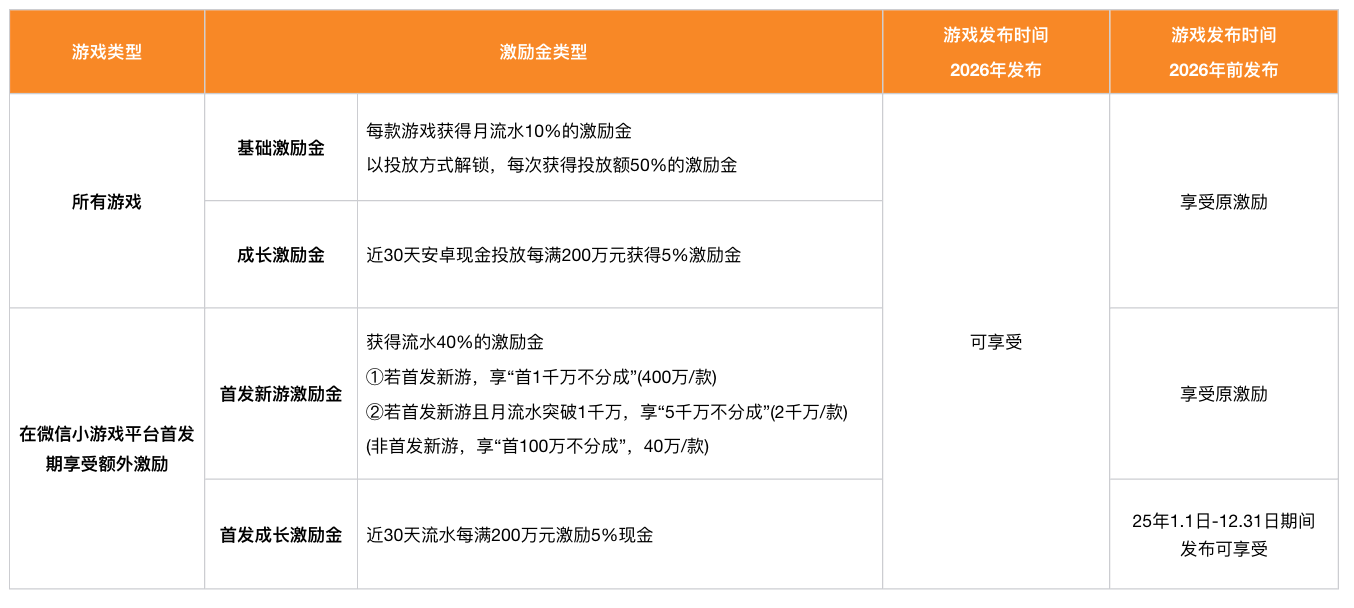 ③ 26年前发布,可自主选择加入26年的「首发新游激励金」或延用当前策略