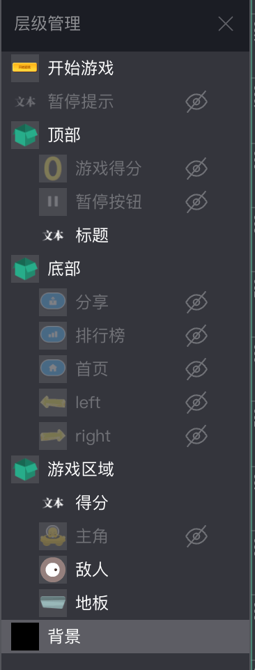 这边建议在制作游戏过程中都加一个叫作【游戏状态】的变量,通过识别【游戏状态】的变化,针对游戏按钮和角色等进行不同的变化操作,尤其是类似踩一踩这种只有单场景的游戏