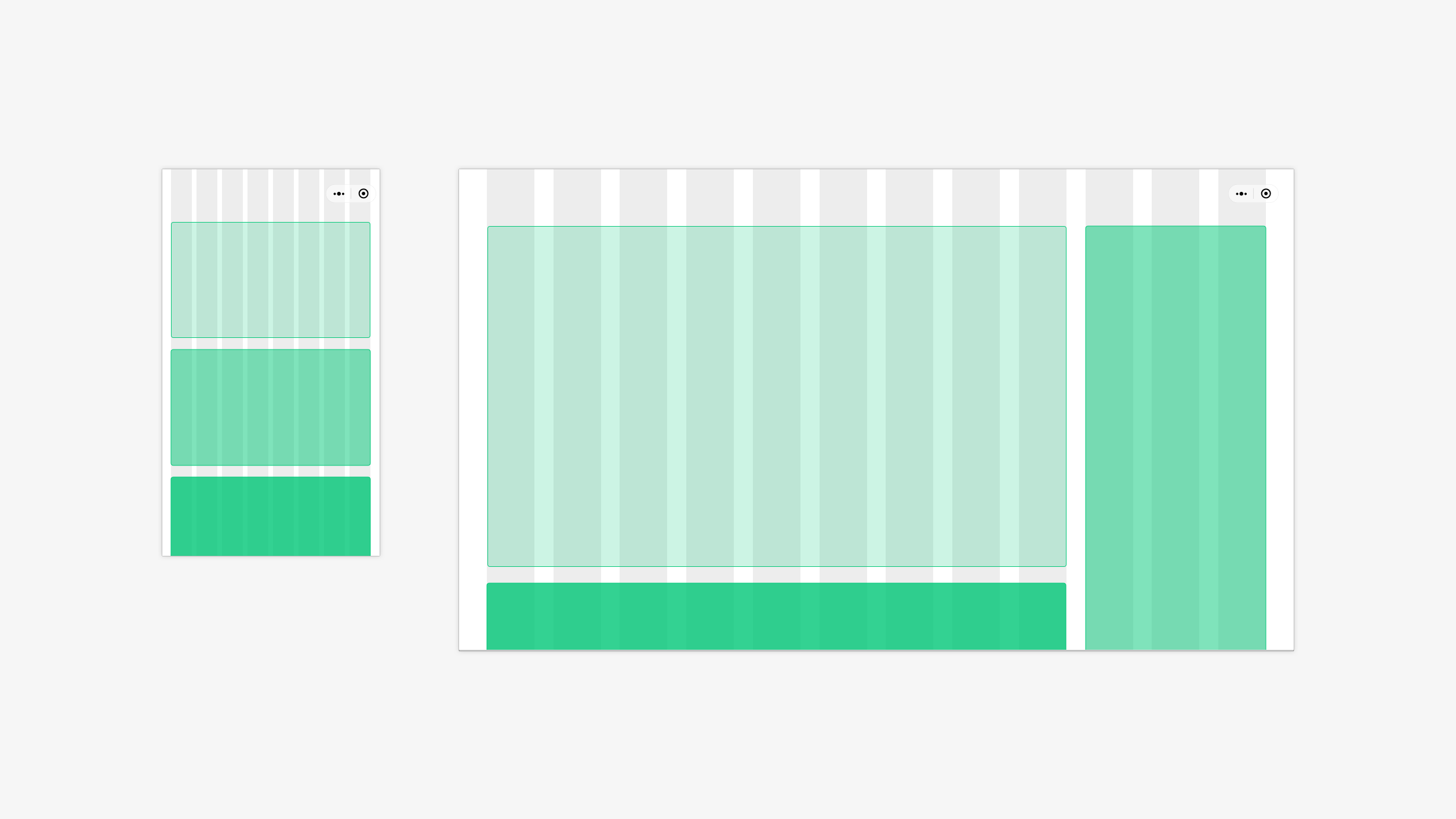 布局特点:页面中存在明显主从关系,主模块为导航模块,在大尺寸下主模块可使用侧边栏形式显示,使页面同时能快速浏览或操作主从模块。