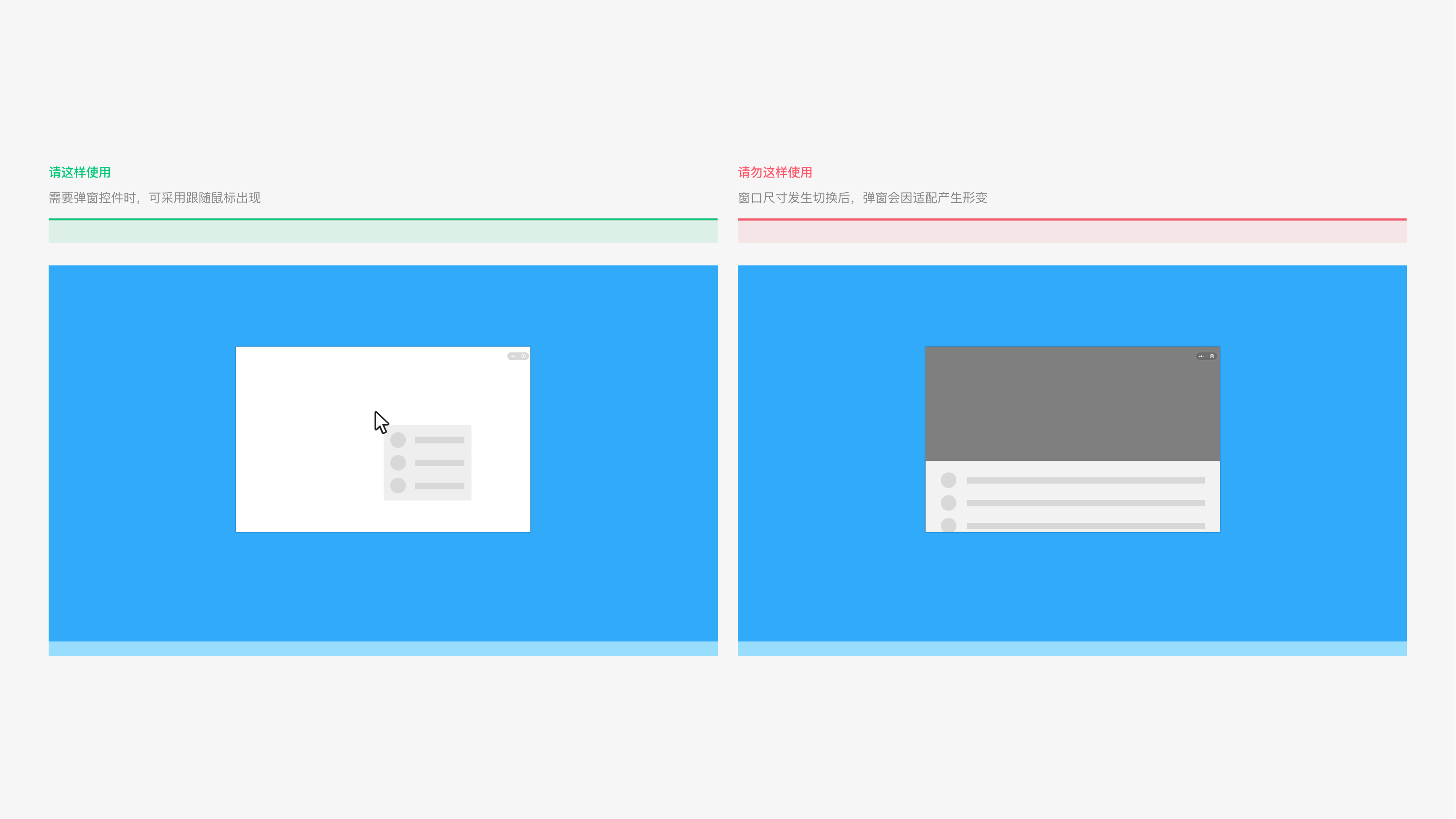为避免适配而产生的弹窗控件形变,弹窗控件可采用鼠标指针跟随的形式进行呈现。