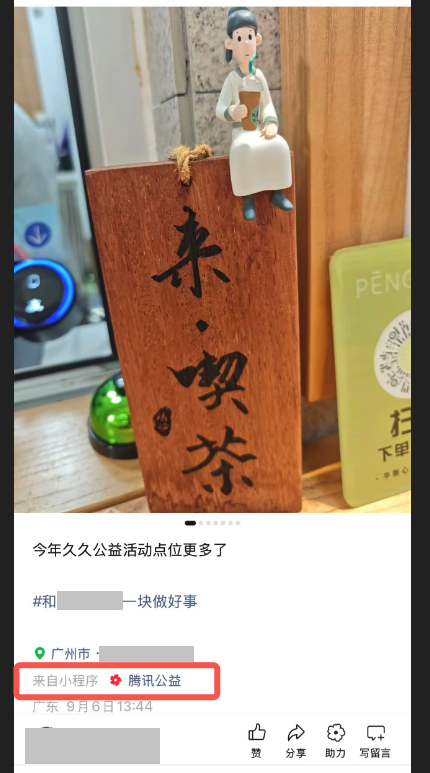 用户从该组件发表的图文,会在文末展示“来自小程序xxx”,点击后默认跳转首页,可通过path参数指定跳转路径。