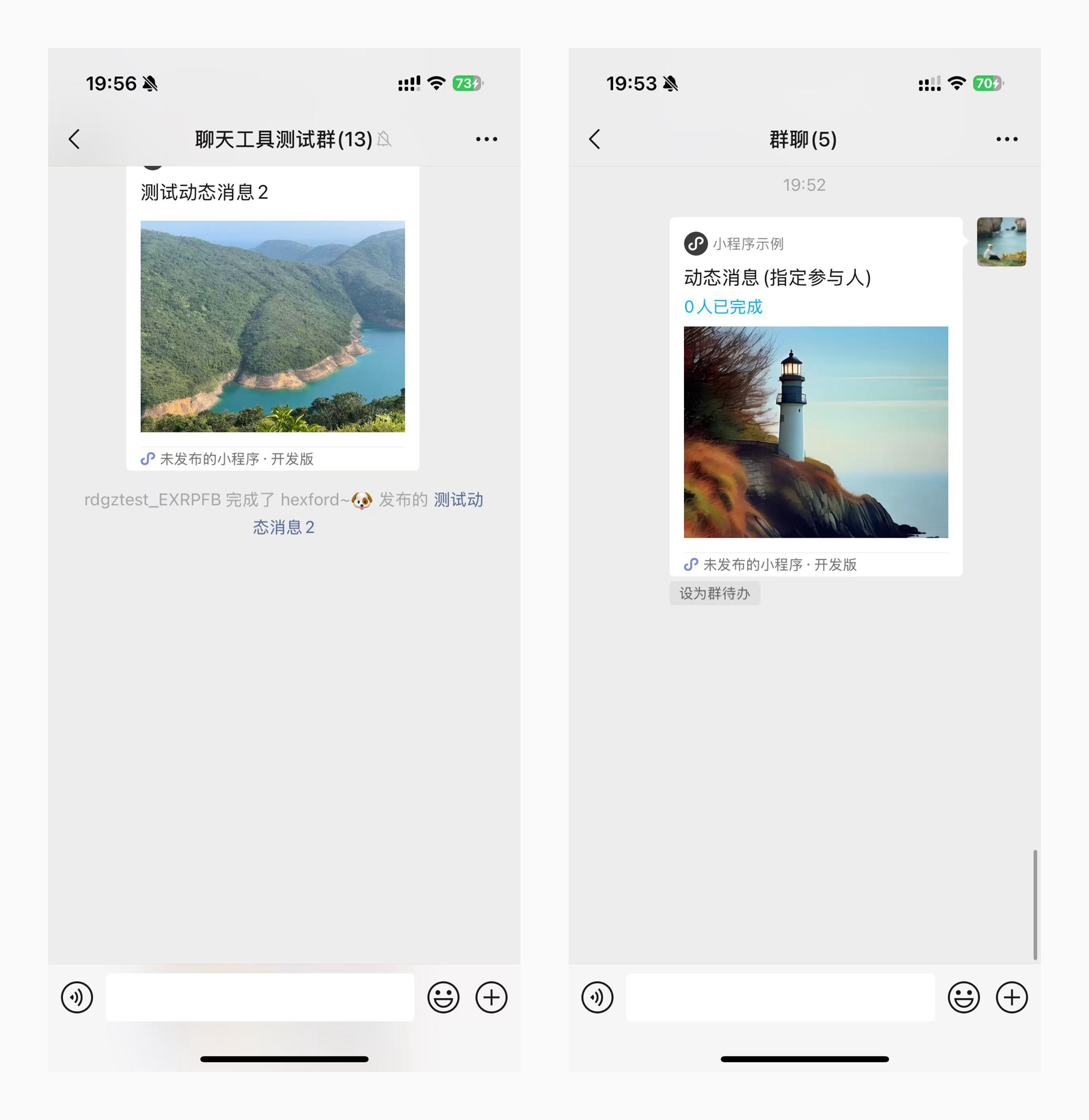 从聊天模式中发送的小程序卡片,可以获得动态消息能力,该能力的用户表现包括: