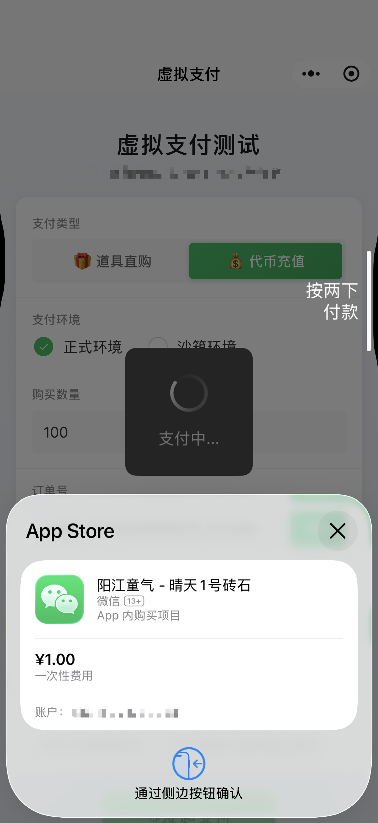 - 页面:虚拟支付-交易订单,可通过支付渠道切换「普通支付」、「Apple 支付」