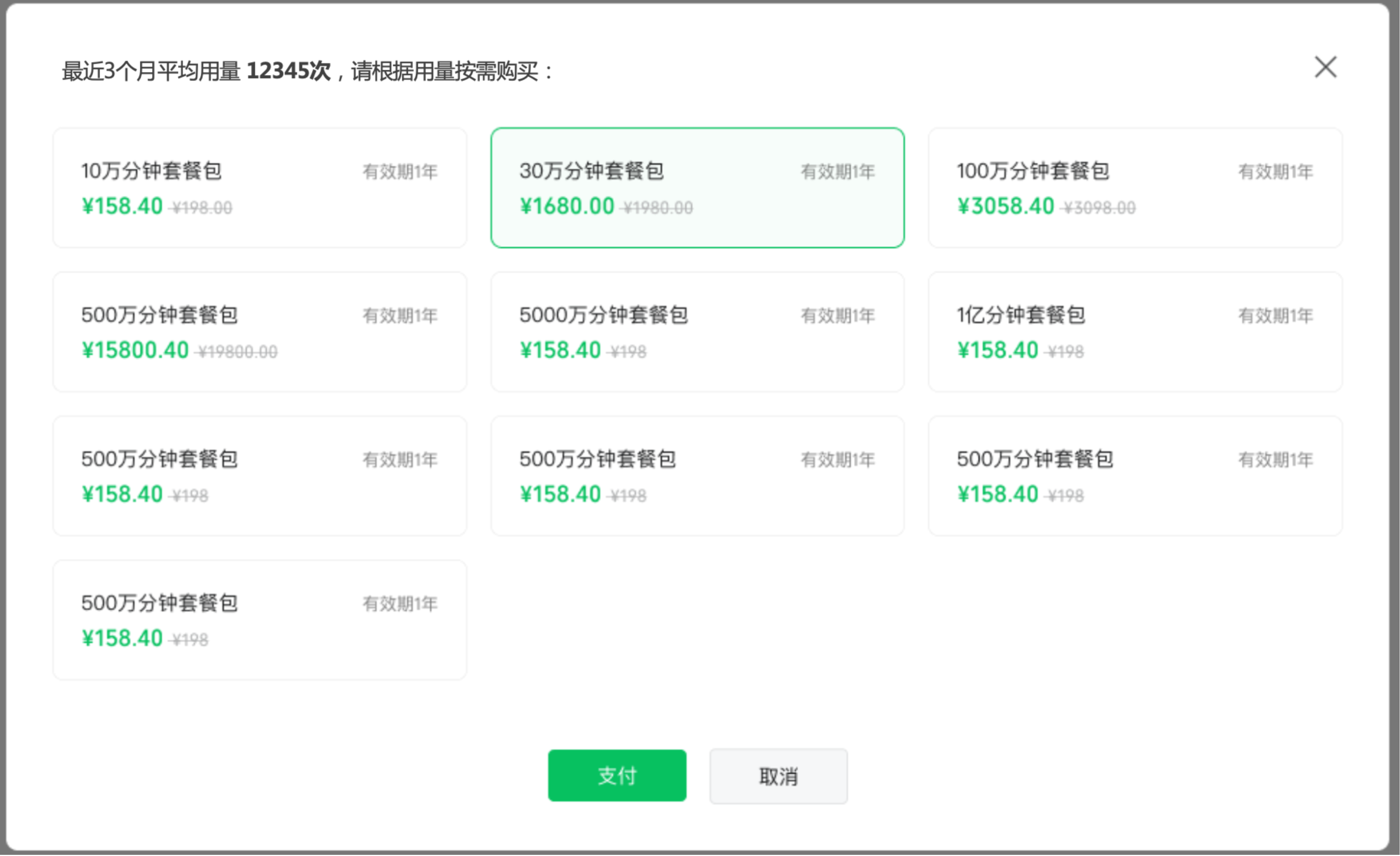 - 2.参考【最近三个月平均用量】,选择所需购买的资源包。