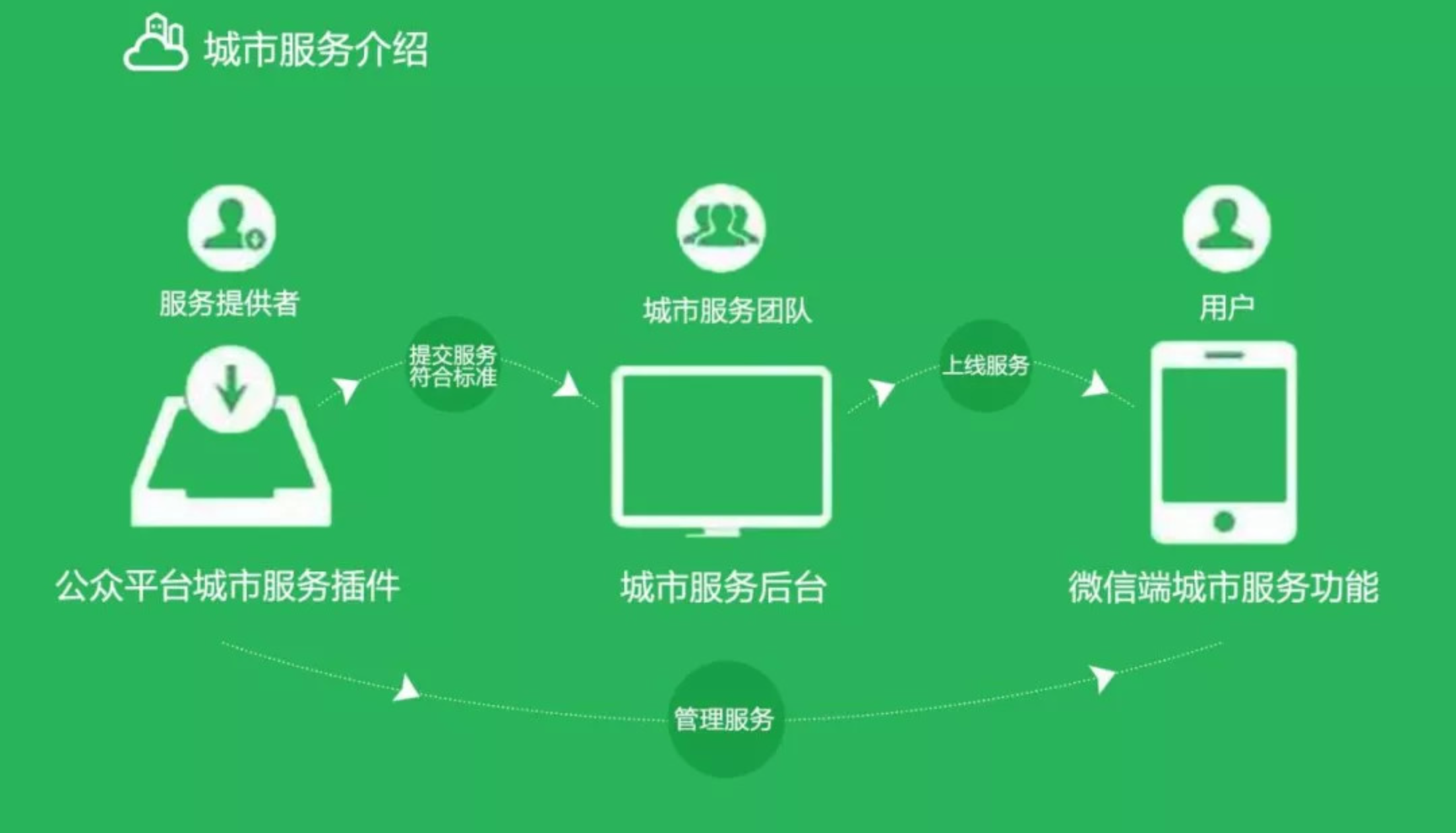 通过审核的服务,微信城市服务团队将按服务所属分类,在城市服务开放对应入口。服务上线至城市服务后,服务提供方可通过公众平台管理已上线服务。