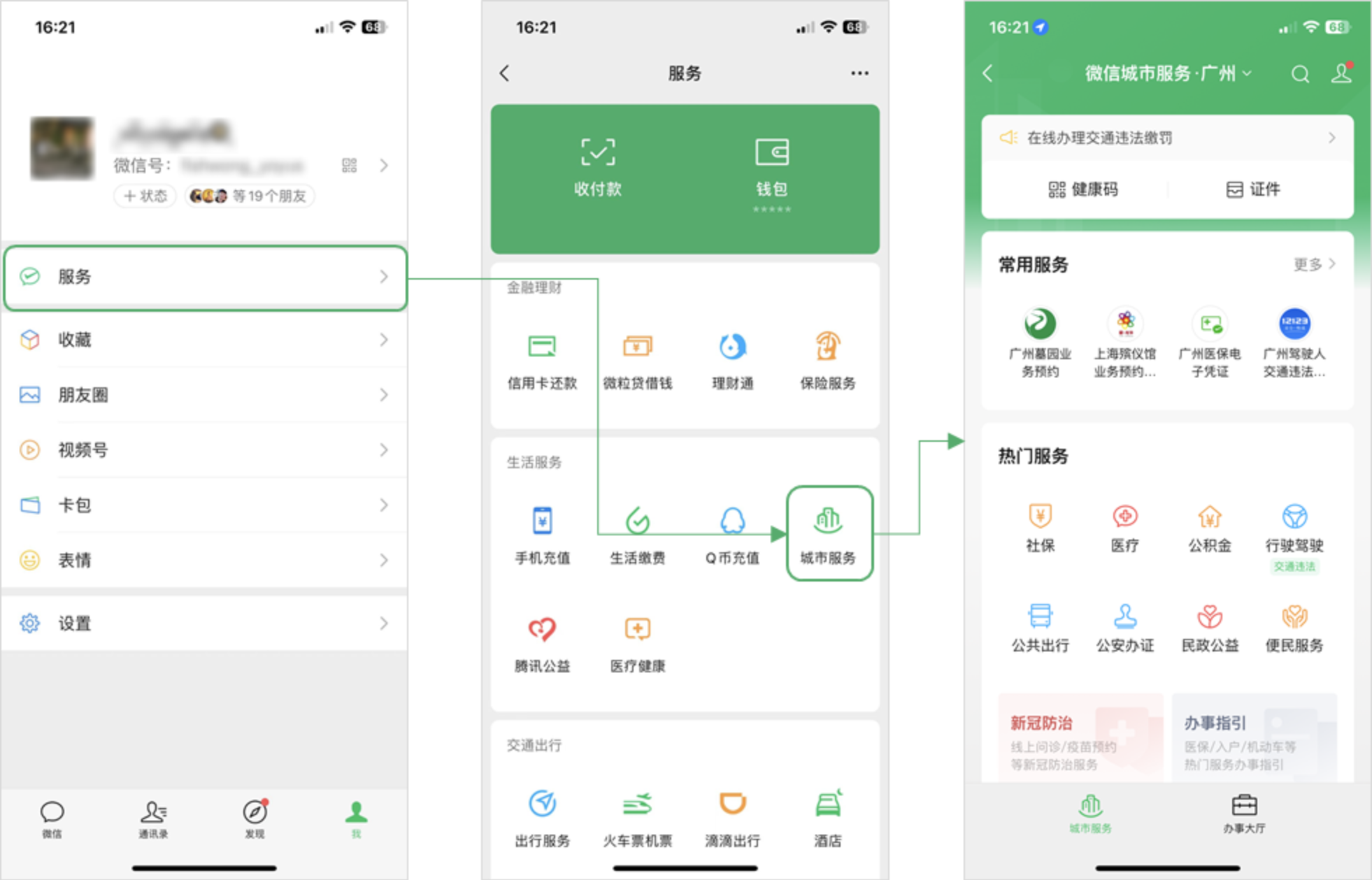 微信城市服务是政务民生服务在微信上的统一服务平台,市民可以在这里便捷地办理社保、公积金、医疗、交管、出入境、公安户政、教育等业务。