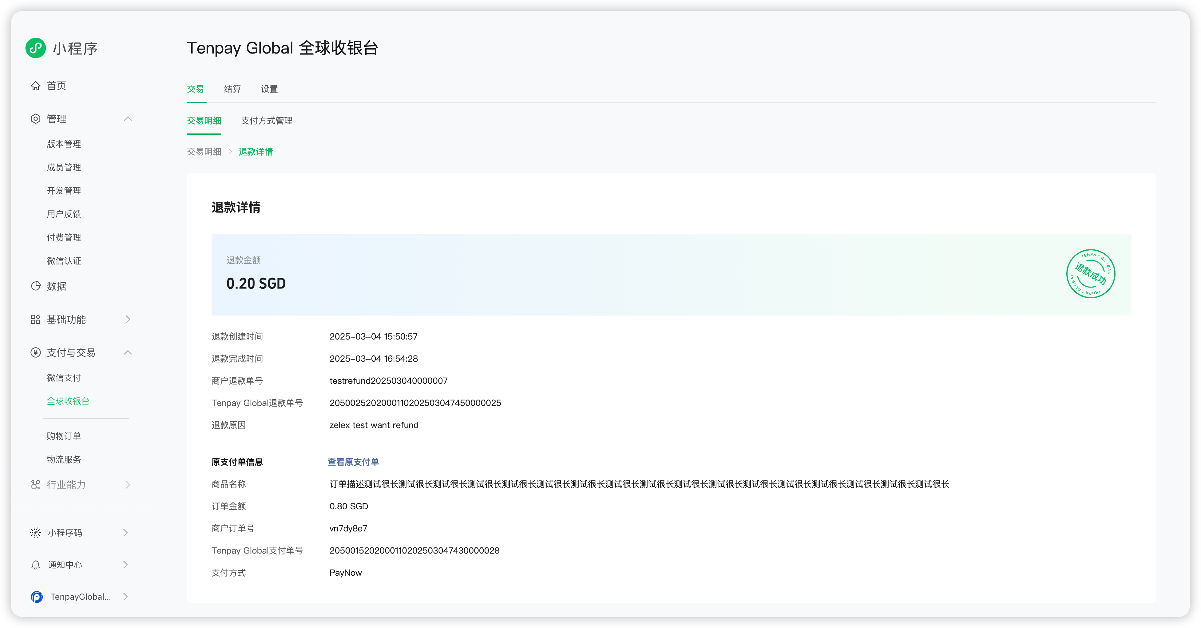 - Handling Fees: Whether handling fees are refunded or additional charges apply depends on the terms specified in the contract between Merchant and Tenpay Global or the cooperating institution.