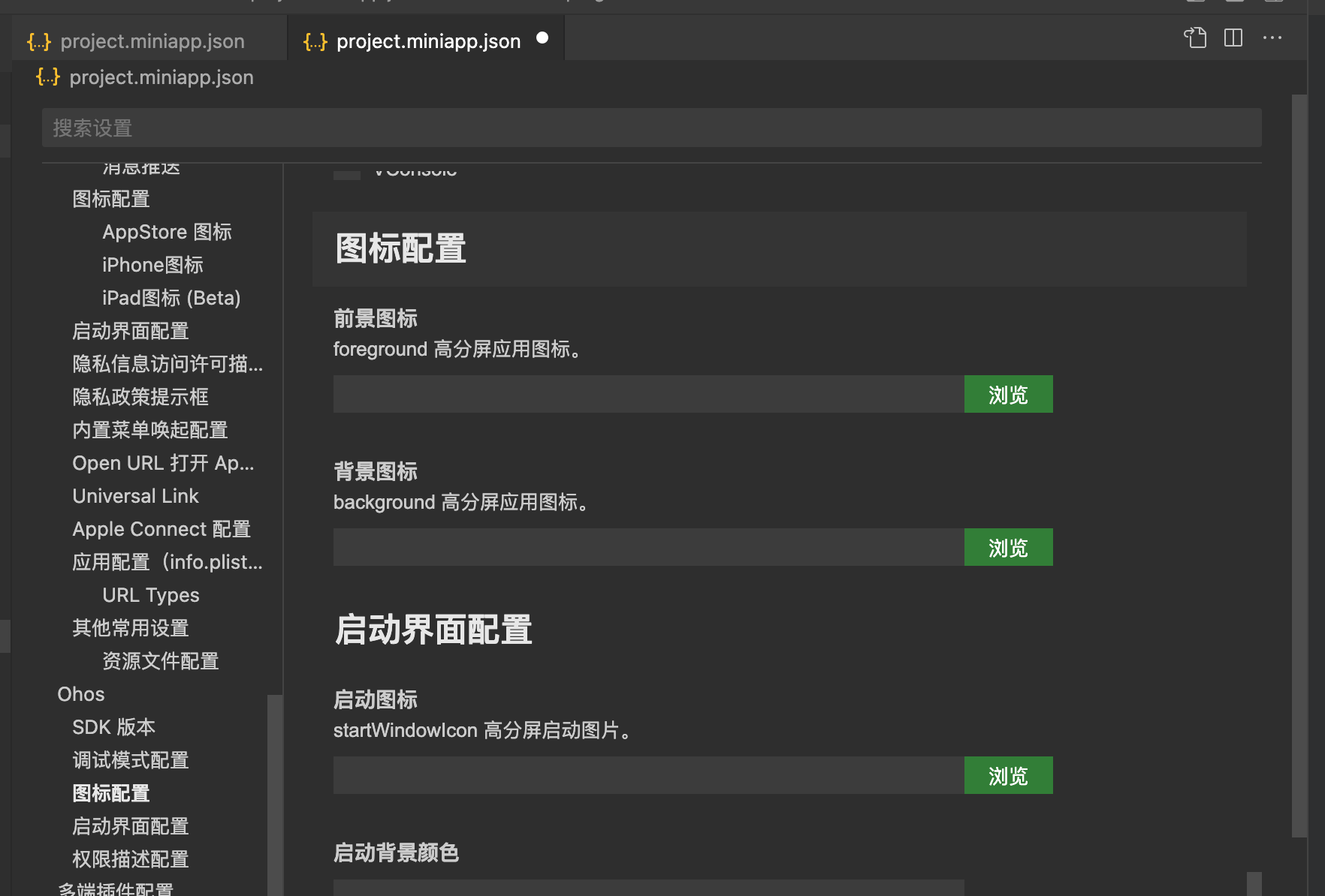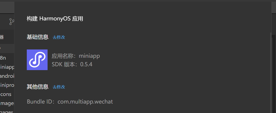 「构建 HarmonyOS 应用」面板的基本信息来源于 project.miniapp.json,如开发者需修改可前往 project.miniapp.json 修改。