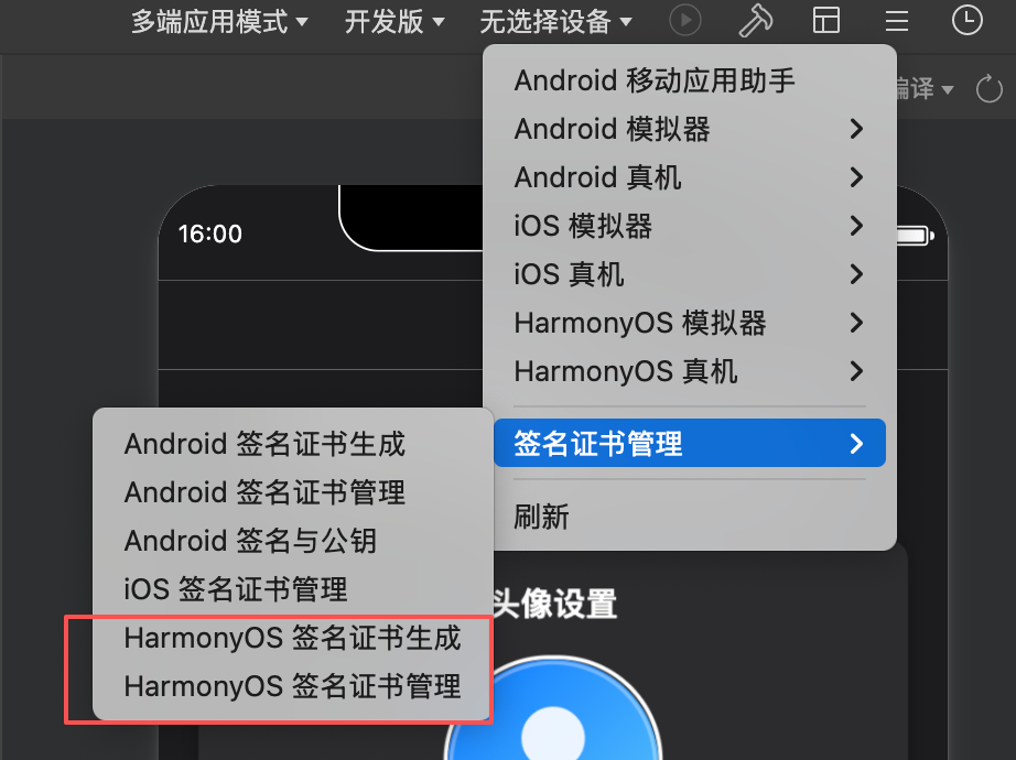 - 关于 HarmonyOS 签名配置可查看 HarmonyOS 证书签名管理。