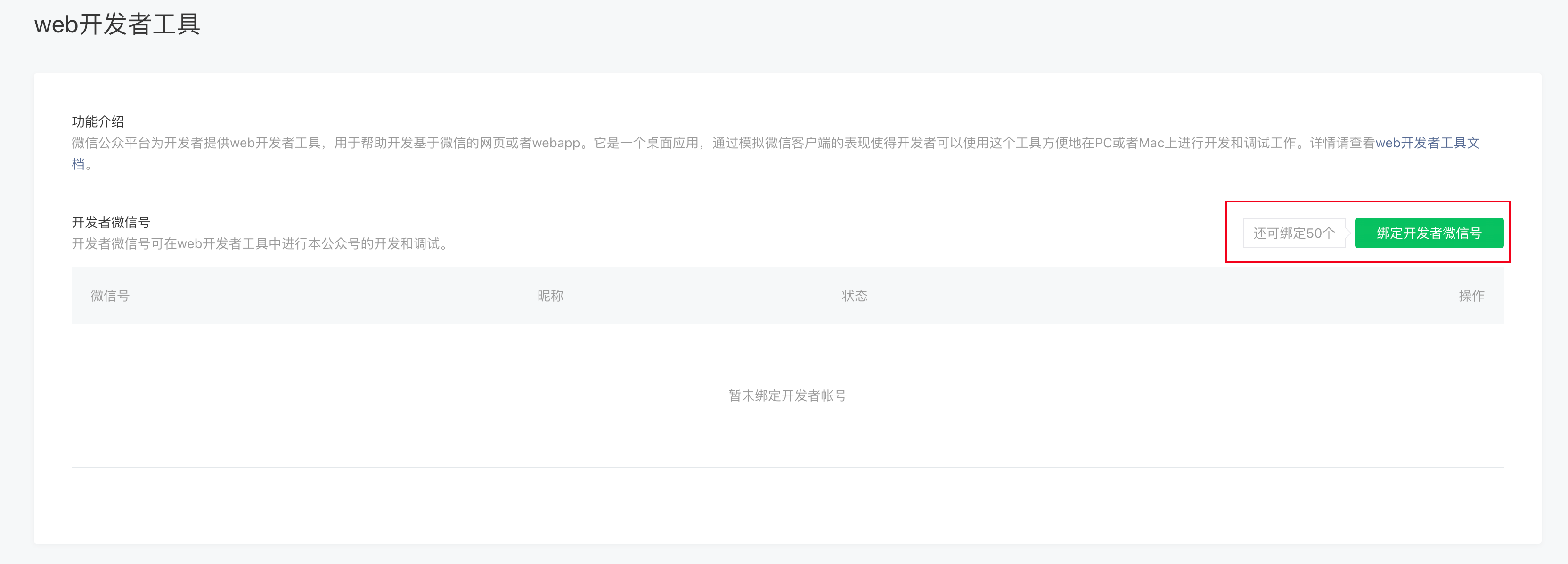 首先,需要到公众号后台为登录用户授权开发者工具权限: