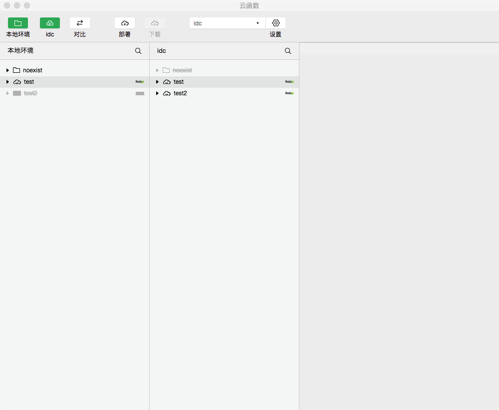 我们通过右键菜单的 “更多设置” 可以进入云函数的沉浸式交互场景,在这个场景里可以完成以上所有的云函数操作,在云目录上按 ctrl 可以进行多选批量操作